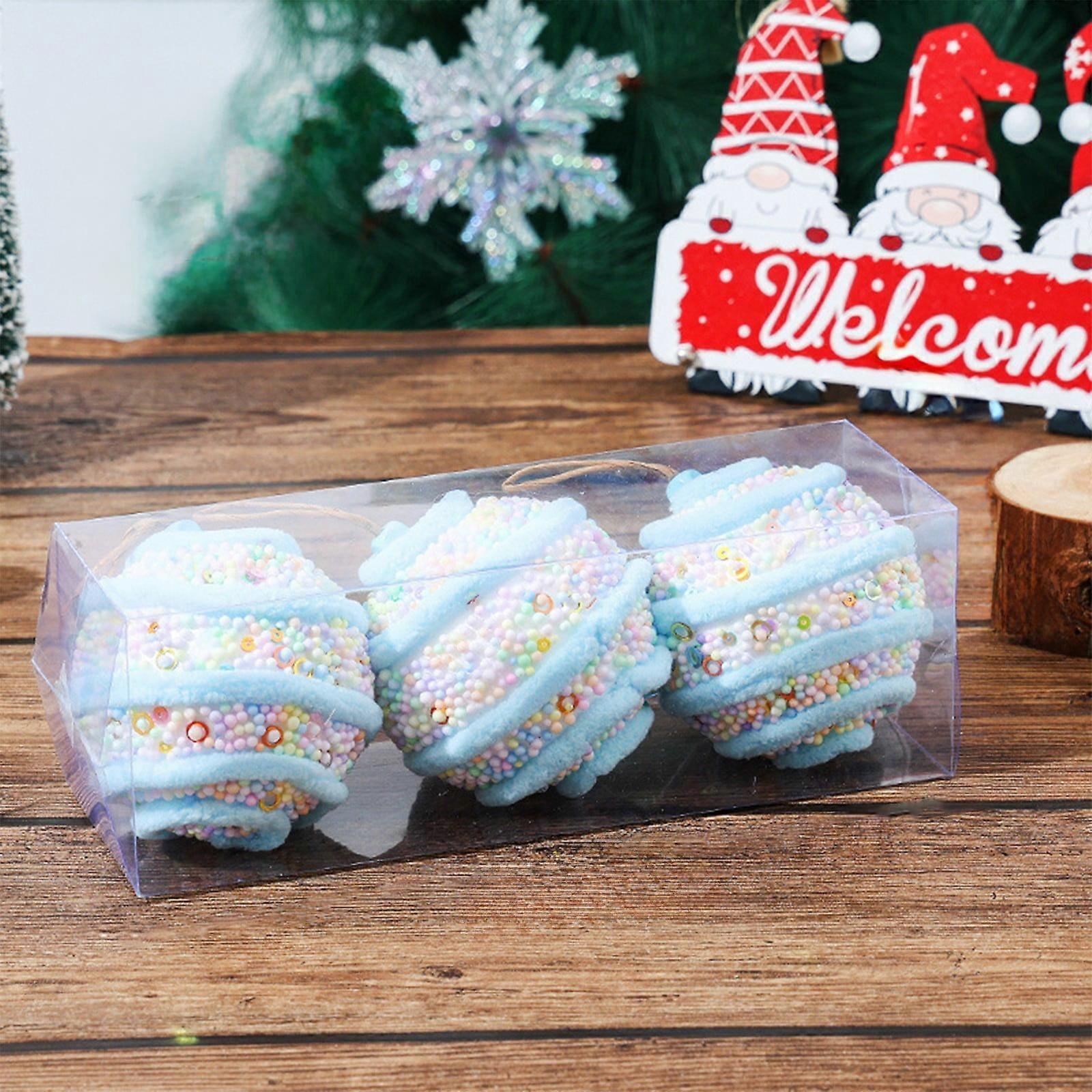 Christmas Tree Ball Ornament Set ,Pastel Pink Yellow Blue Green Shatterproof Glitter Foam Christmas Ball Ornaments, Decorative Hanging Decor for Xmas New Year Holiday Party Decorations 3pc