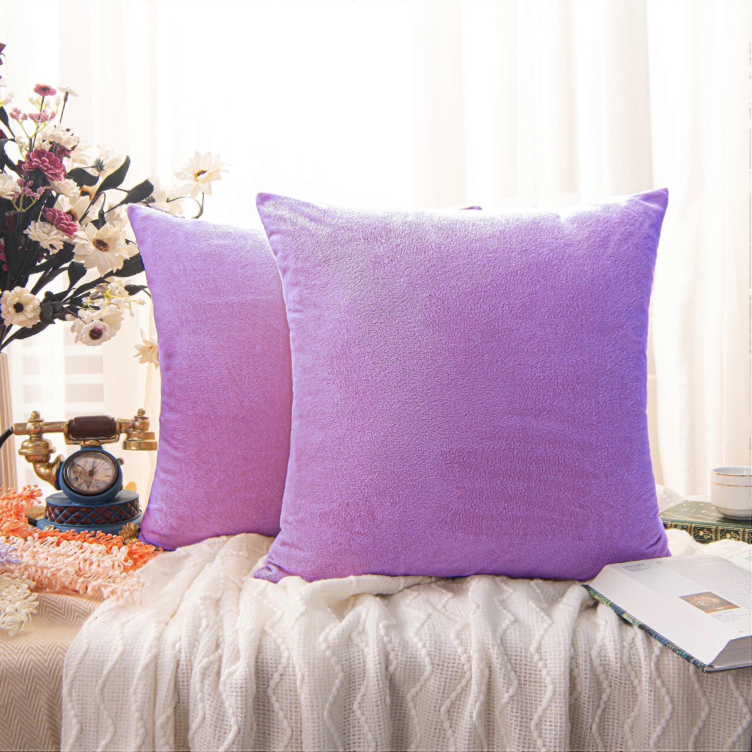 Flxxie Ultra Fluffy Soft Velvet Decorative Solid Color Throw Pillow Simple Square Covers Cushion Case 2 Pieces, 20" x 20", Light Purple