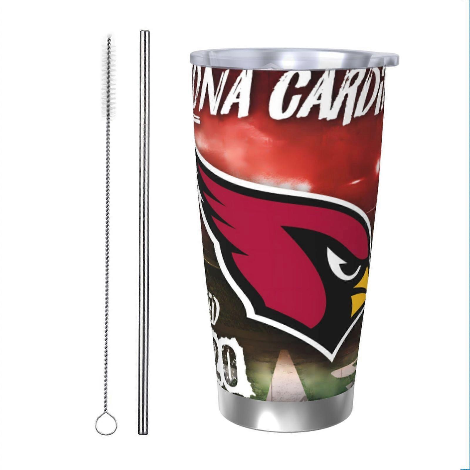 Cardinals Football Team Theme 20oz Stainless Steel Thermos Cup with Lid & Straw - Compatible with Car Cup, Hot & Cold Drinks - Sports Coffee Cup