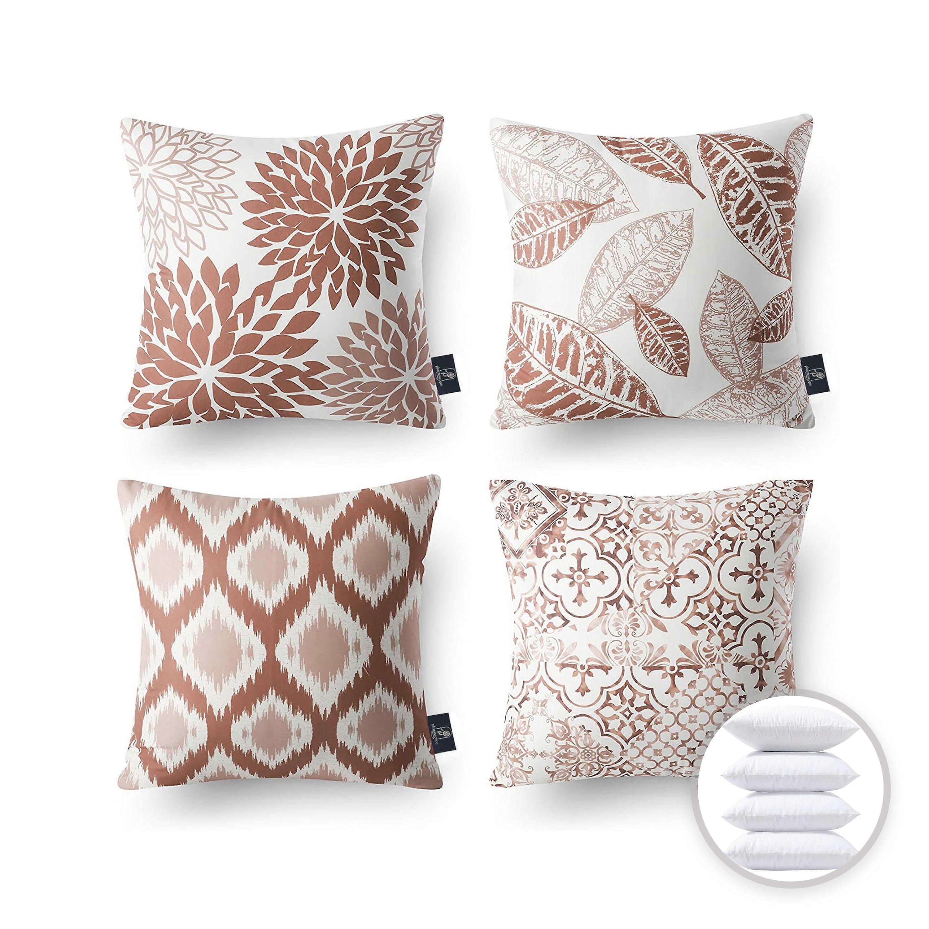 Phantoscope New Living Series Duplex Printing Decorative Throw Pillow, 18" x 18", Caramel, Set of 4