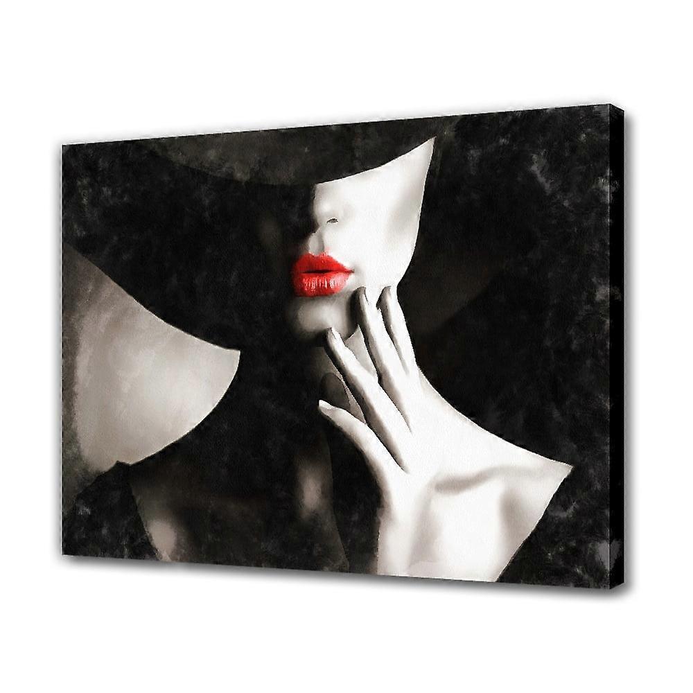 Modern Black & White Red Lips Women Painting, Vintage Canvas Wall Art, 16x24inch, Frame-style, Poster for Living Room Bedroom Decor