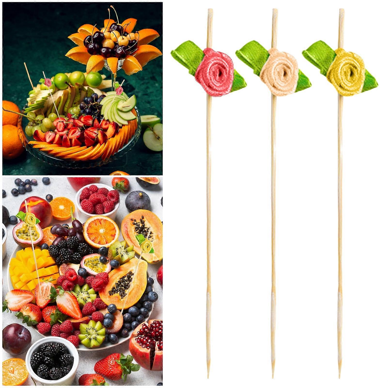 SUSUchens 100Pcs Romantic Rose Cocktail Picks Rose Flower Decor Appetizers Fancy Toothpicks Long Flower Bamboo Cocktail Skewer Sticks Orange 100pcs