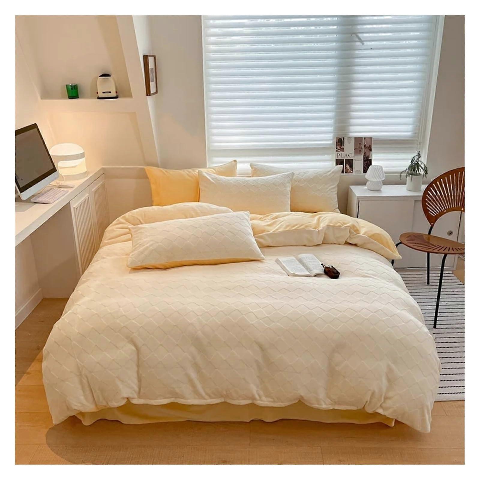 Milk Velvet Bedding Set Queen Size 4Piece, Winter Warmth Thick Comforter, US Full 4Piece, One Color