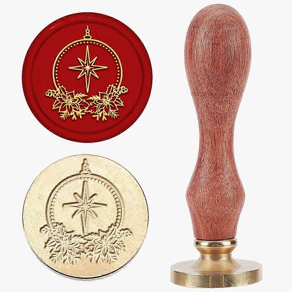 Christmas Wax Seal Stamp Set Sealing Wax Stamp Solid Brass Head with Wood Handle for Envelopes Invitations Gift Card Star 83x22mm Stamps: 25x14.5mm