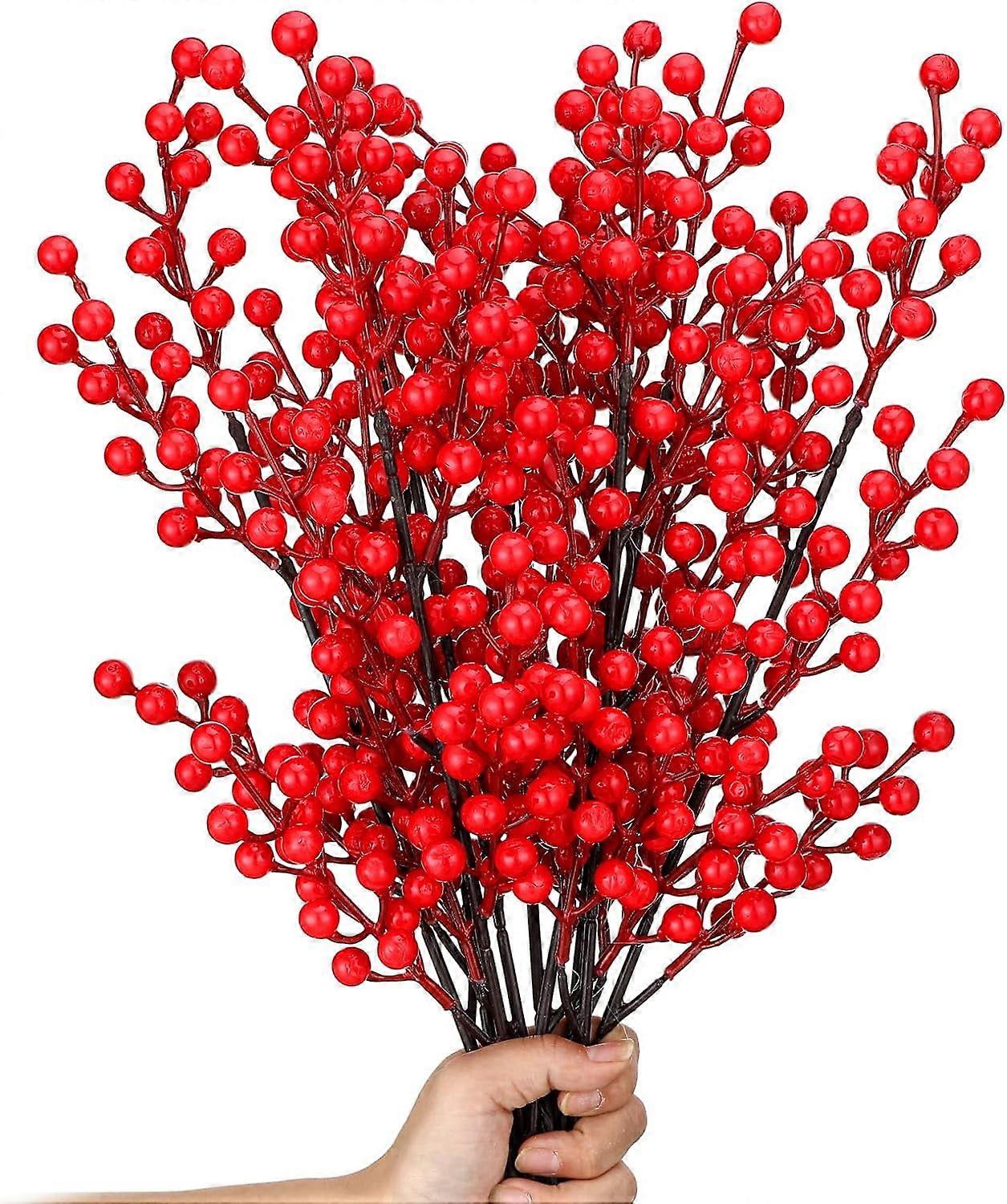9 Pcs 16.5" Artificial Berry & Pine Picks, Faux Winter Floral Stems Compatible with Christmas Arrangements, DIY Craft, Holiday Decor (Red)