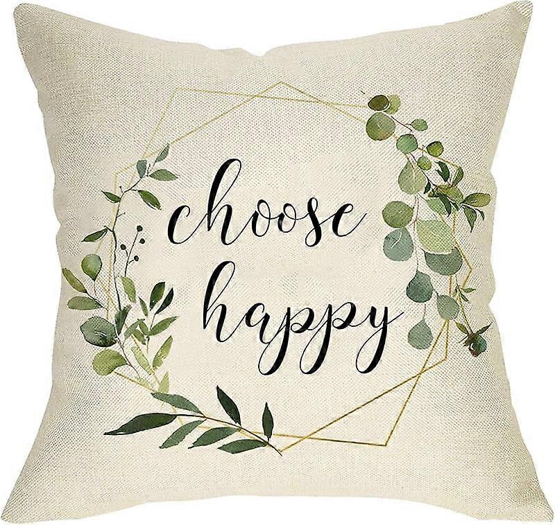 Olive Branch Wreath Cushion Case, Inspirational Quote Square Pillow Cover for Sofa, Fall Autumn Farmhouse Decor 18x18