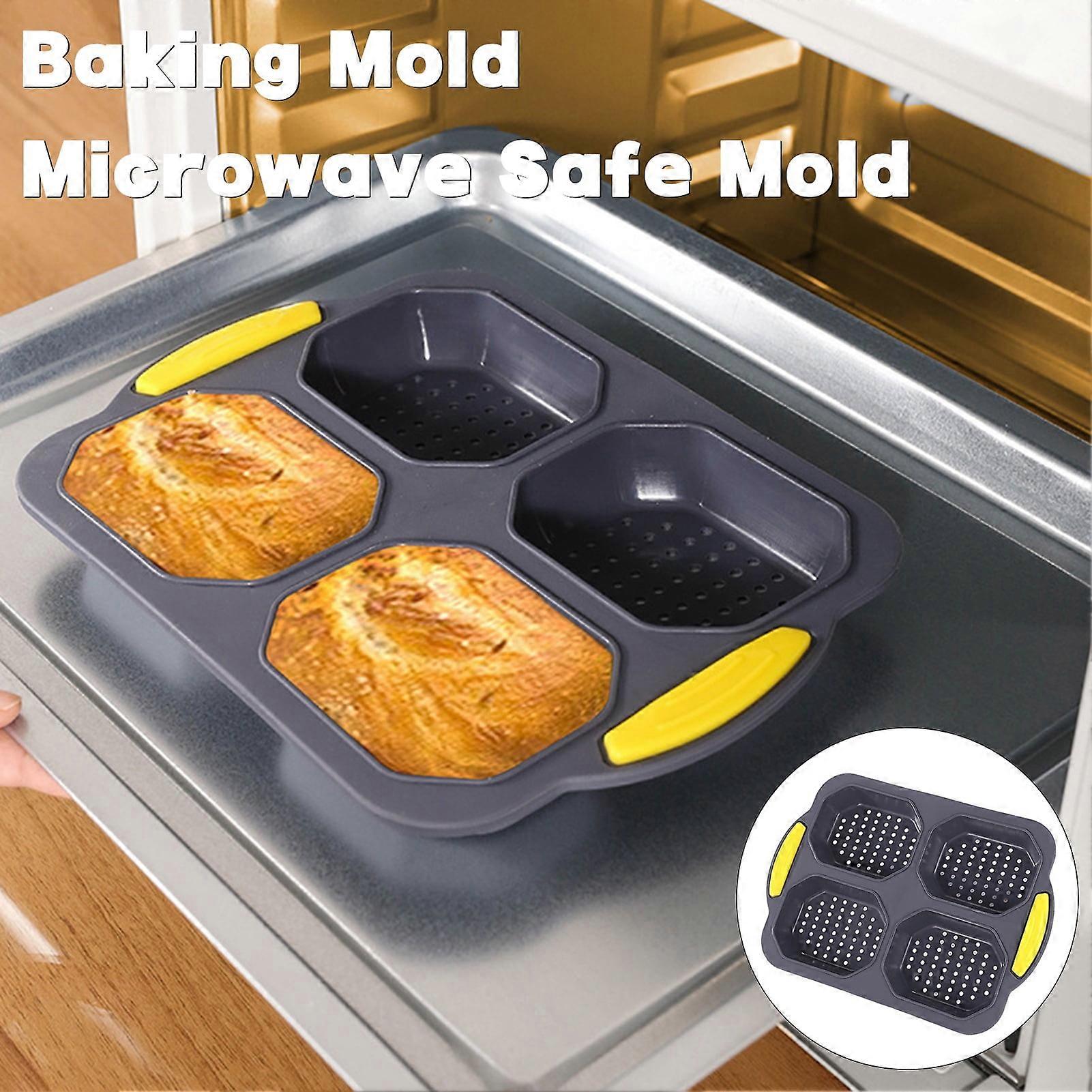 High temperature resistant silicone mold for baking, steaming, grilling, and freezing. Food grade material ensures safe direct contact with food. Dense ventilation hole design ensures even heating for perfect results. Microwave, dishwasher, and oven safe for convenient use and easy cleaning. Versatile 4-bread mold baguette toast mold suitable for various baking needs. Description: Introducing our high-quality baking mold, perfect for all your baking needs. Made from food-grade silicone material, this mold is safe for direct contact with food and is microwave, dishwasher, and oven safe. The high temperature resistant 4-bread mold baguette toast mold is designed for household cake baking, burger molding, and more. The dense ventilation hole design at the bottom ensures even heating, making it ideal for cooking, baking, steaming, grilling, and freezing a variety of delicious treats such as burgers, biscuits, tarts, cakes, and mousses. Additionally, it can be used as liners for baking molds. Upgrade your baking experience with our versatile and durable baking mold. Item Name: Baking Mold Material: Silicone Features: Food Grade, High Temperature Resistant, 4-Grids Size Details: L: 25.3cm/9.96", W: 18cm/7.09" (Approx.) Notes: Due to the light and screen setting difference, the item's color may be slightly different from the pictures. Please allow slight dimension difference due to different manual measurement. Package Includes: 1 x Baking Mold High temperature resistant silicone mold for baking, steaming, grilling, and freezing. Food grade material ensures safe direct contact with food. Dense ventilation hole design ensures even heating for perfect results. Microwave, dishwasher, and oven safe for convenient use and easy cleaning. Versatile 4-bread mold baguette toast mold suitable for various baking needs.