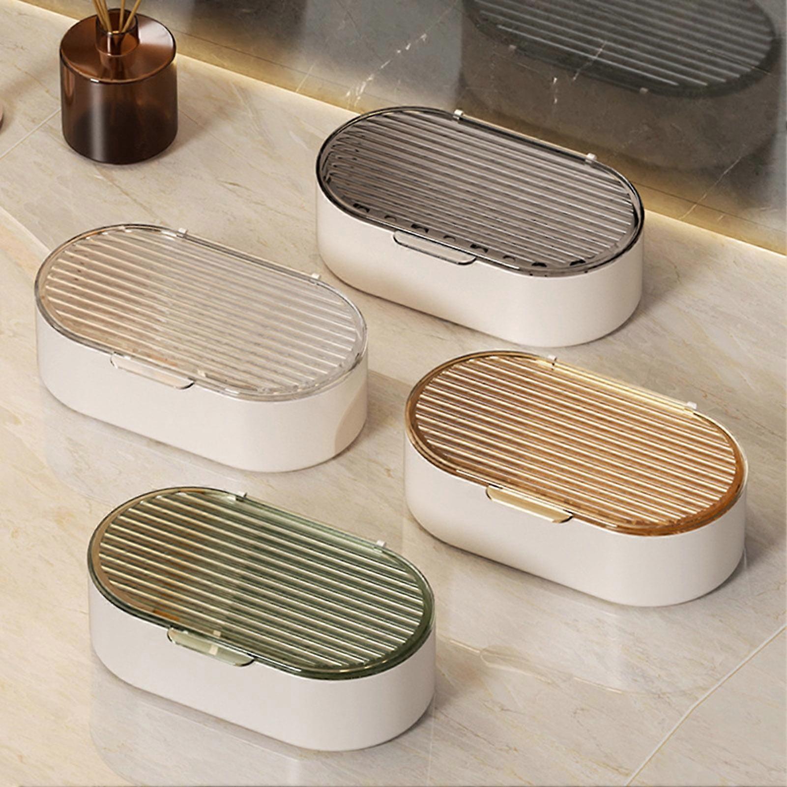 SUSUchens Luxury Soap Box Double Layer Hollow Design with Drainage Dustproof Lid Easy to Clean Household Bathroom Soap Holder Green
