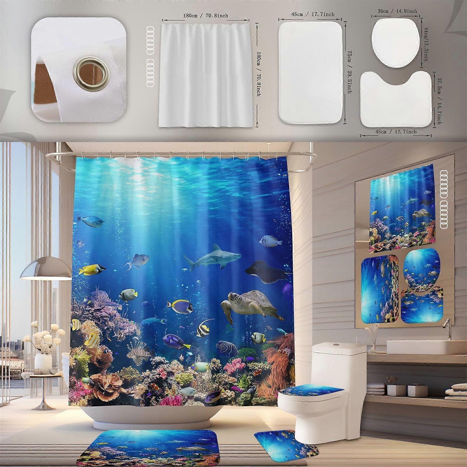 WJSXC Waterproof, Mold-Proof Polyester Shower Curtain & Bath Mat 4-Pc Set, 180x180cm, Compatible with Bathroom Decor