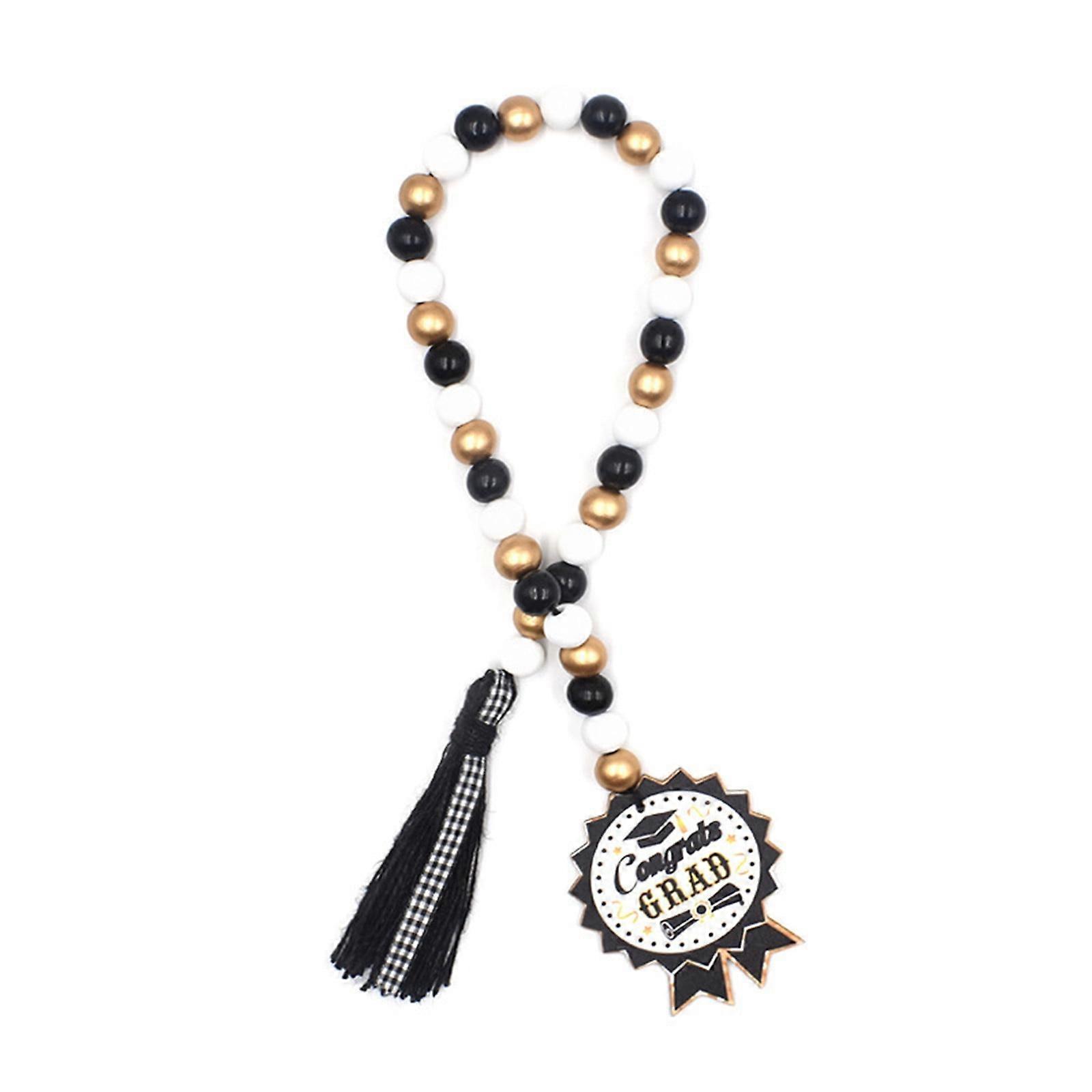 Herrnalise Congrats Grad Wood Beads Garland, 27.6" Long, Natural Wood Bead Decor for Graduate Party, Wall Hanging, Tiered Tray Decor