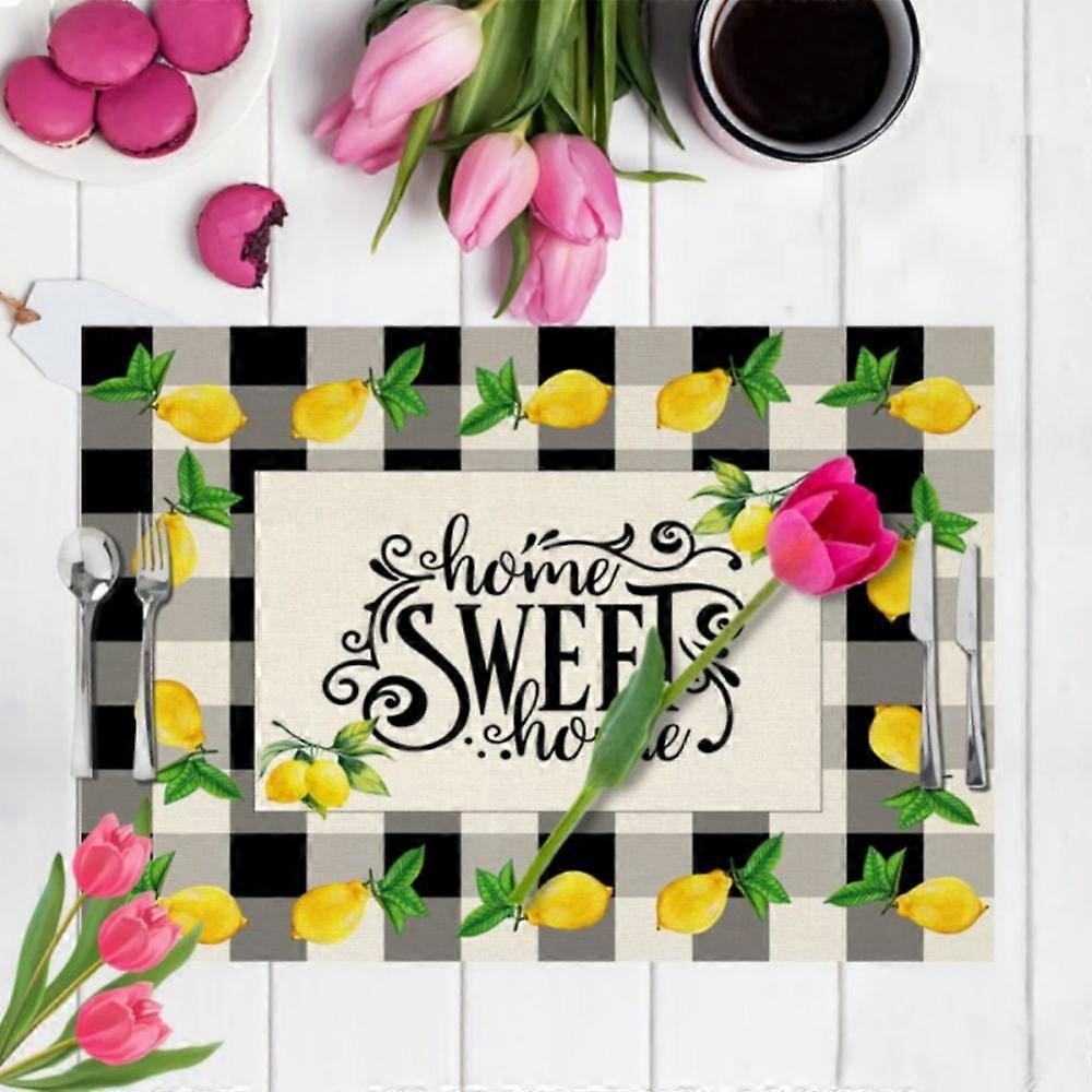 Washable Placemats, Black Buffalo Check Lemon Truck Gnome Design, Heat-Proof Table Mats for Kitchen Dining Decor