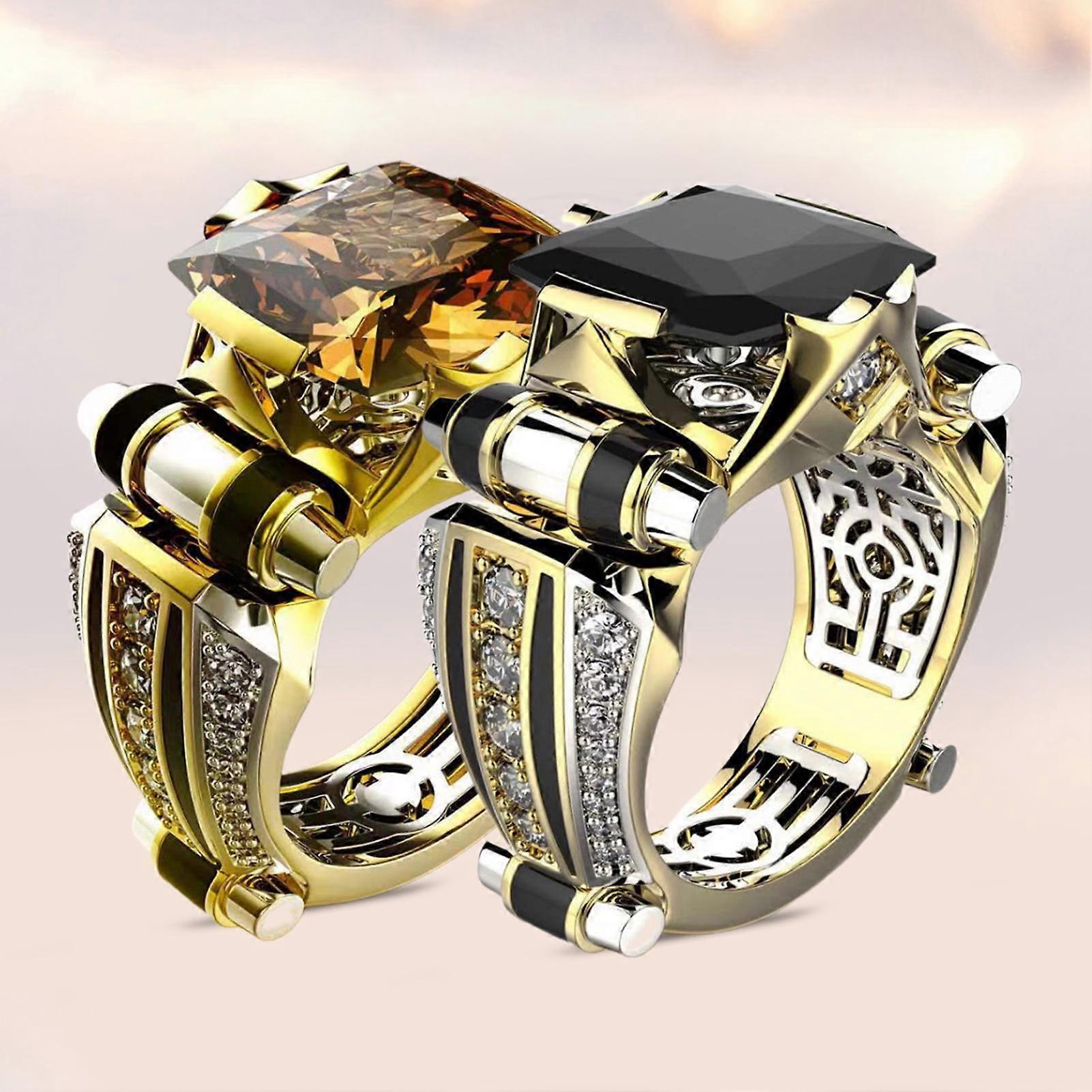 Hesroicy Women Ring Faux Square Crystal Two-tone Vintage Cool Punk Gift Hollow Bling Cubic Zirconia Ladies Finger Ring for Party