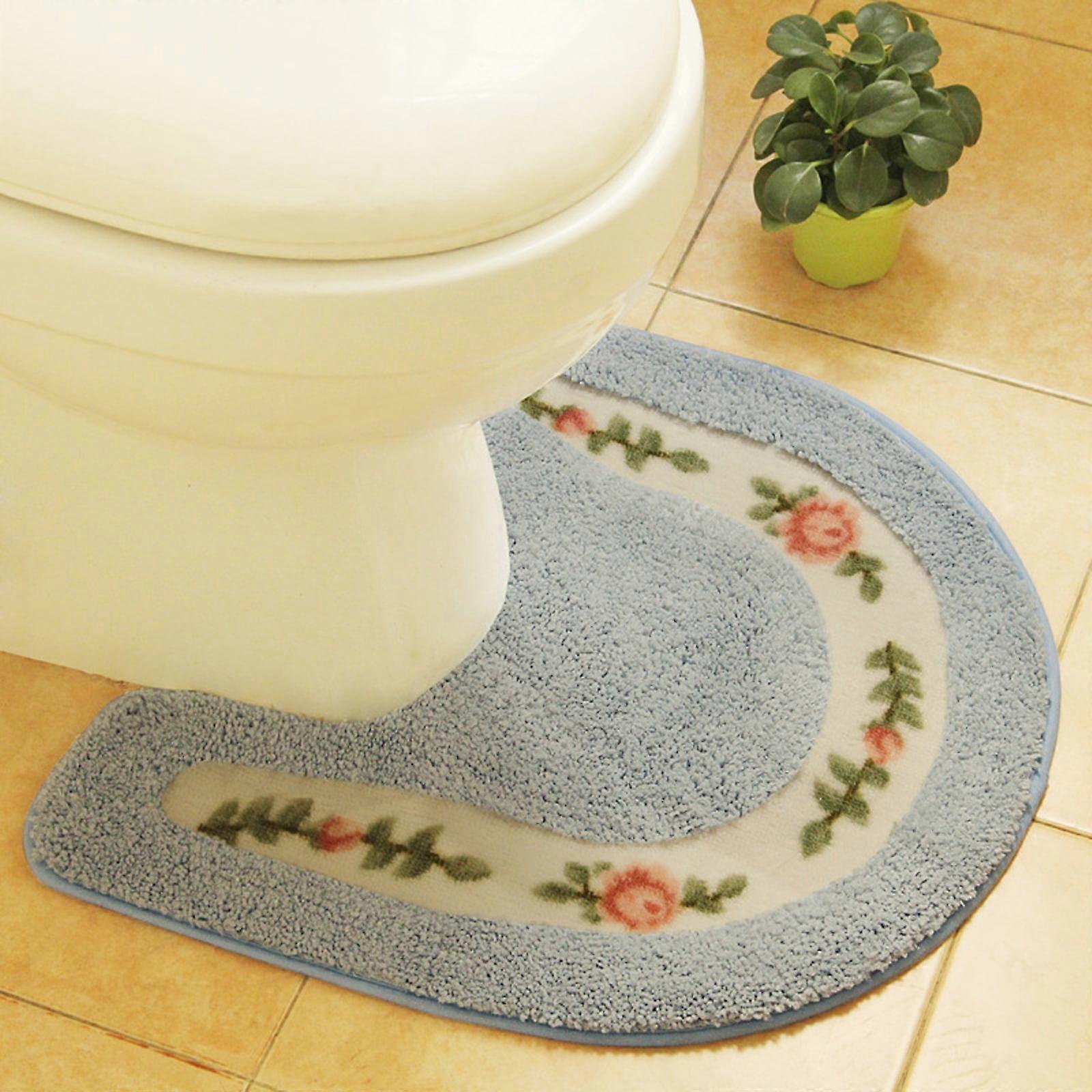 Bathroom Rugs 1 Piece Ultra Soft Non Slip Absorbent Floral Rose Bath Mat Plush Carpets for Toilet Floor Rugs Blue