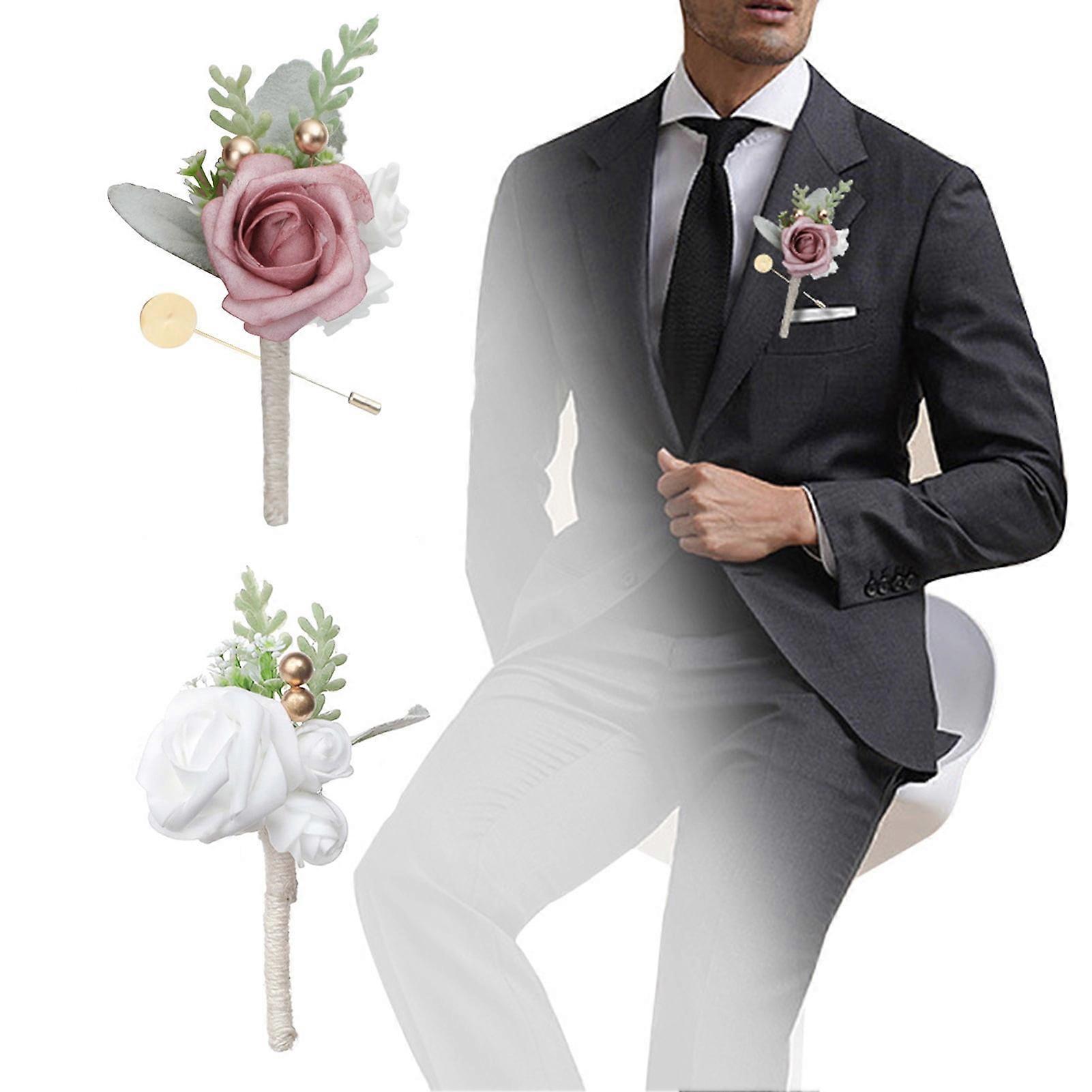 SUSUchens Wedding Corsage Handmade Romantic Realistic Decorative Artificial Rose Flower Wrist Corsage Boutonniere Wedding Supplies White