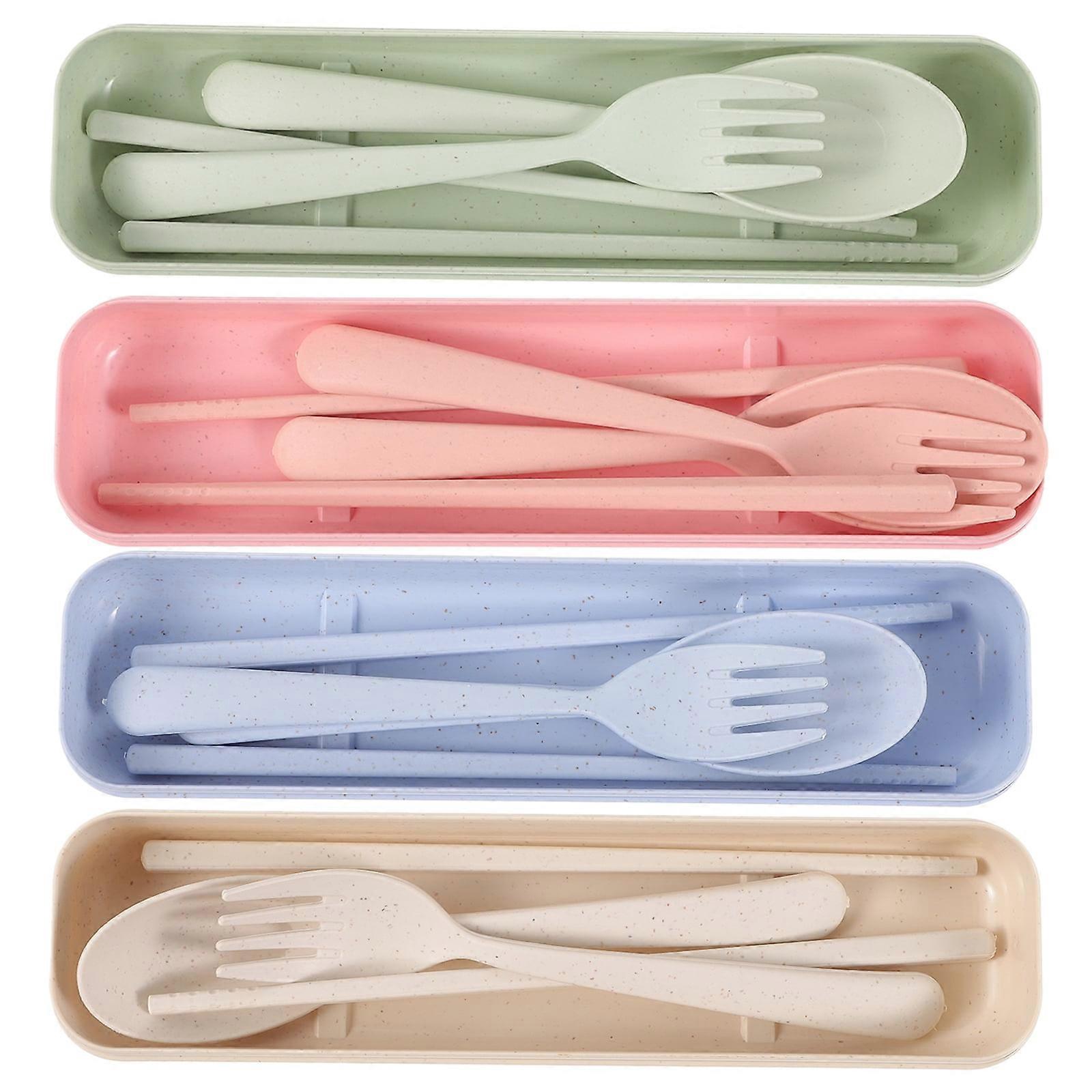 Portable Cutlery Stainless Steel Flatware Reusable Silverware Travel 4 Sets Camping Tableware Wheat Stalk Pp