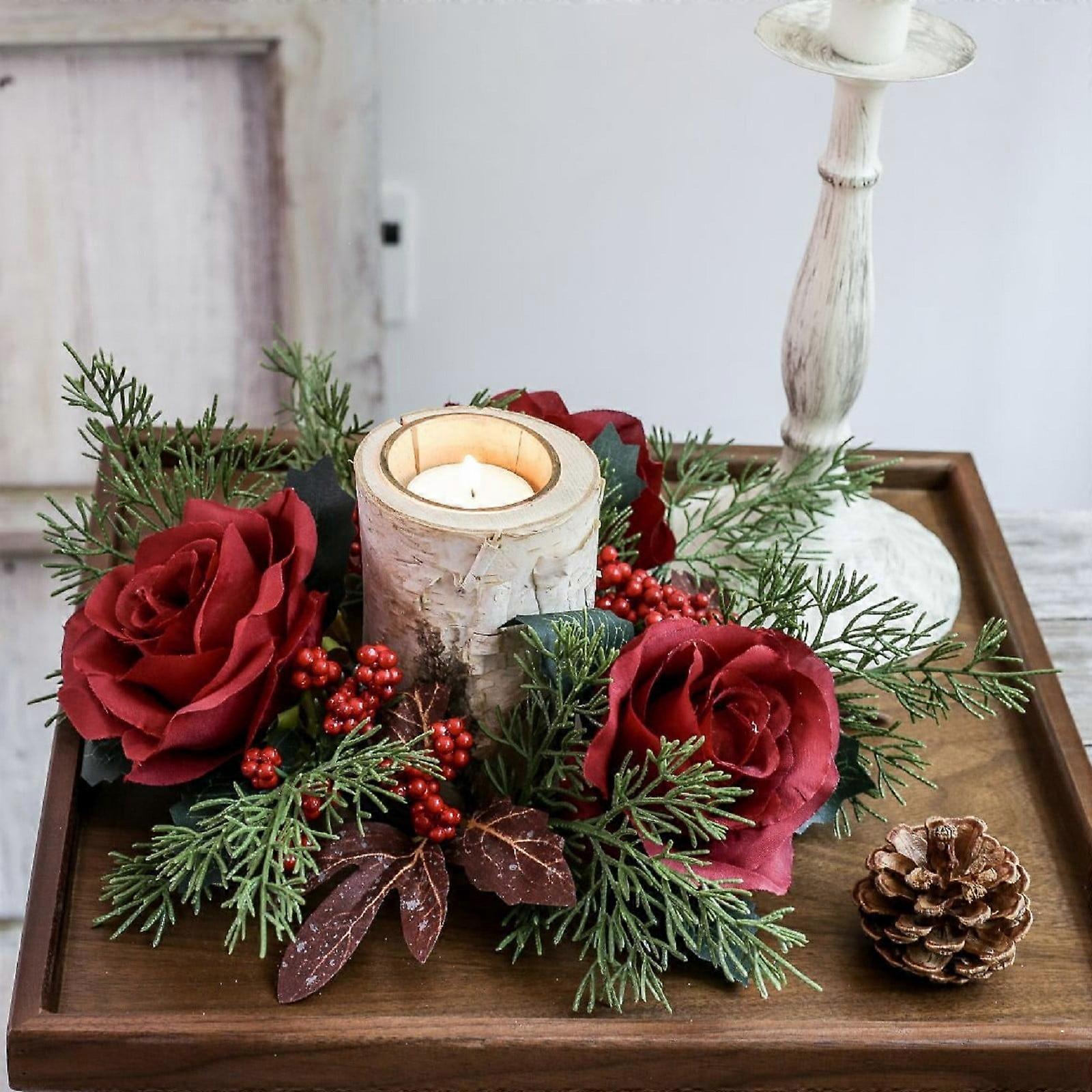 Cyber Monday Deal: Staron Christmas Decorations Candle, Candlestick, Garland & Ring - Red, Table Ornaments Props Compatible with Wine