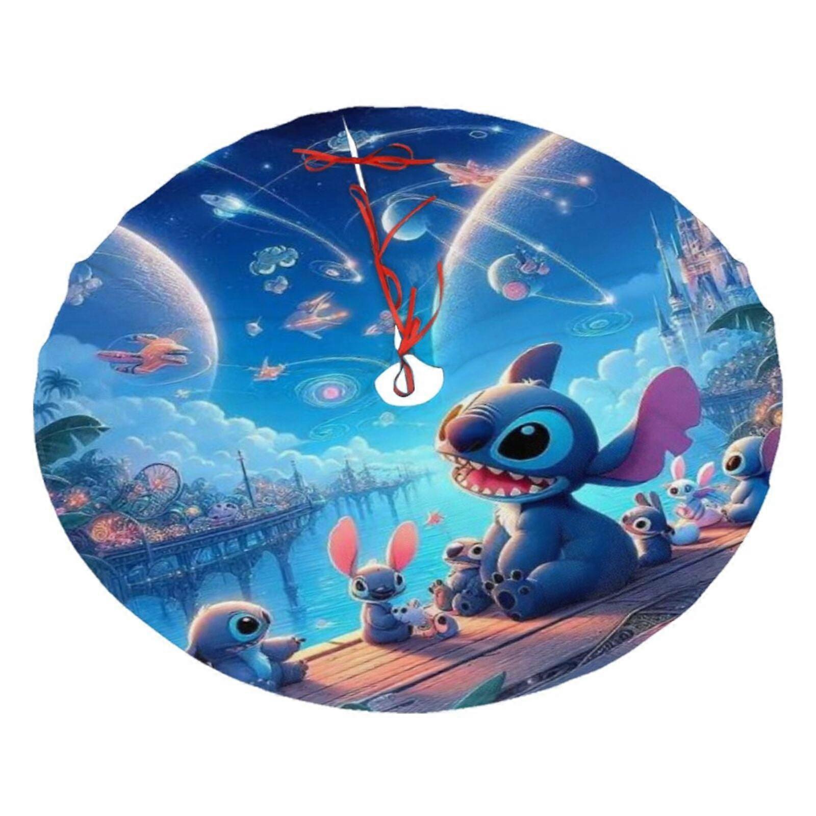 Stitch Looks Up At The Stars Christmas Tree Skirt, Soft And Funny Merry Christmas Tree Collar Farmhouse Xmas Holiday Decoration 48"