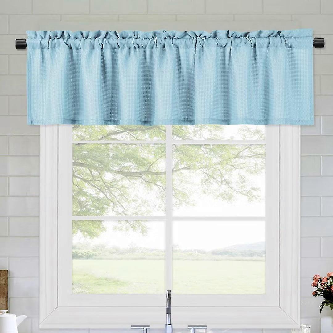 Haperlare Kitchen Curtain Valance 60"W x 15"L Waffle Weave Waterproof Light Filtering Window Valance for Bathroom Cafe, Blue, 1 Panel