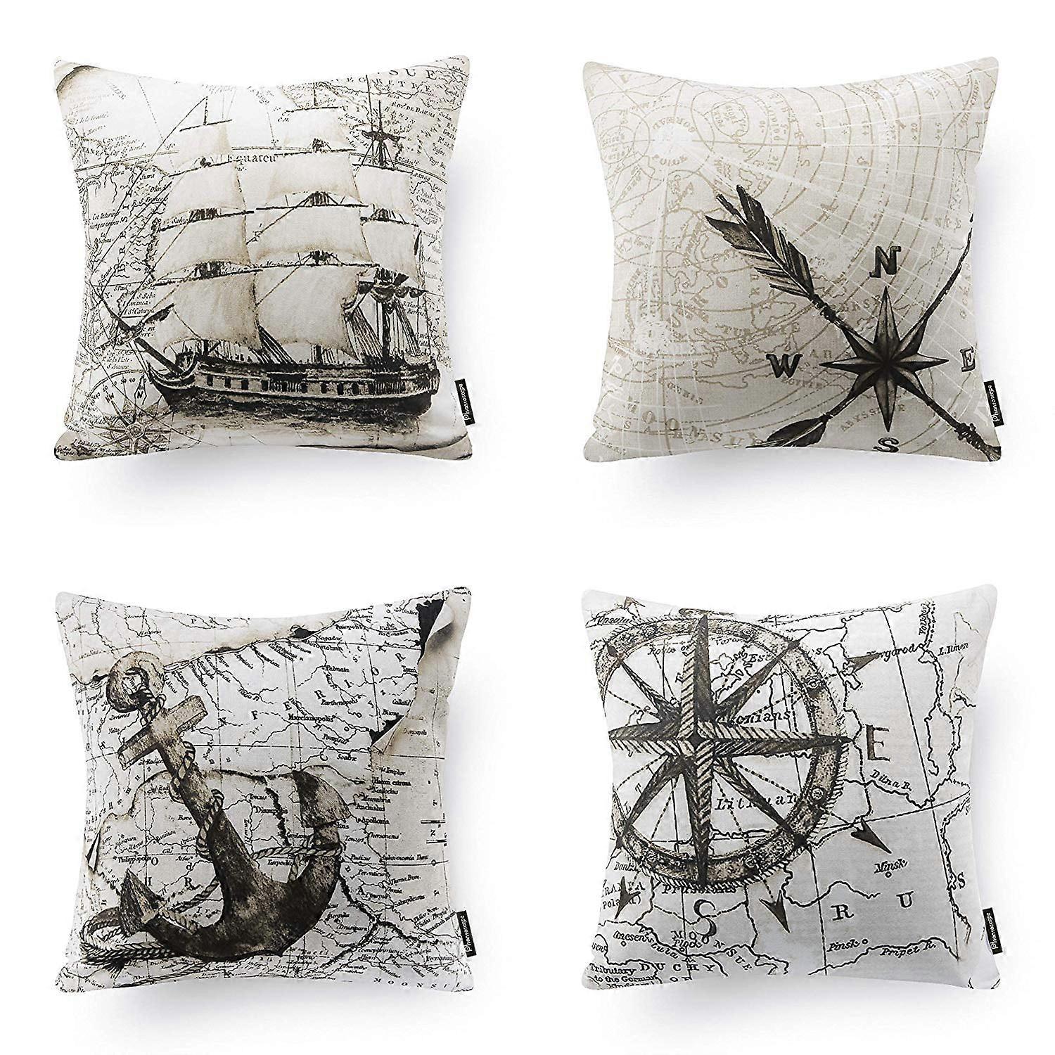 Phantoscope Ocean Series Decorative Throw Pillow Cover, 18" x 18", Beige Navigation, 4 Pack