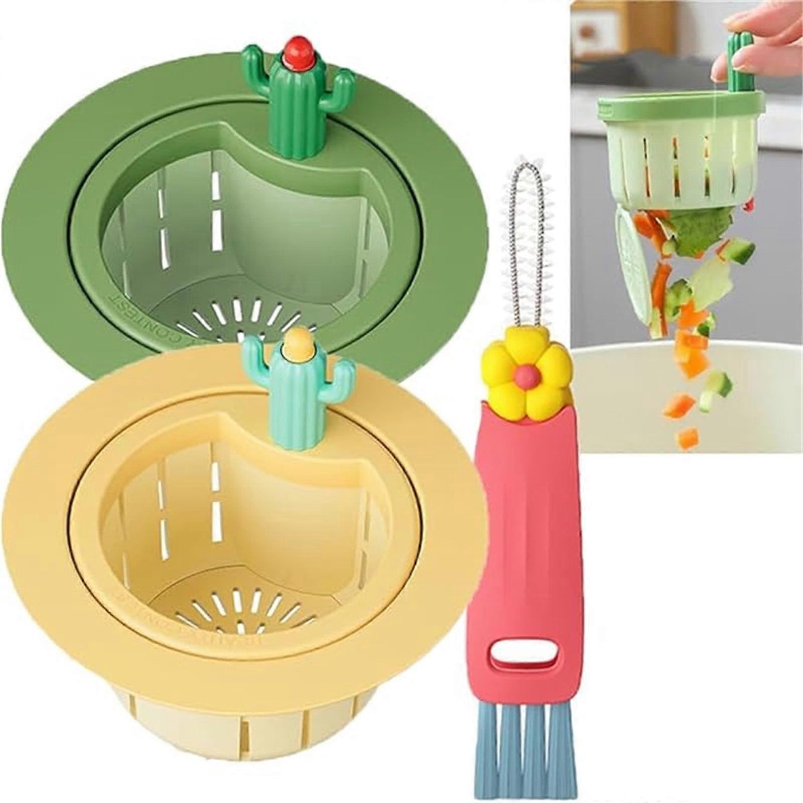 YiFudd Cactus Kitchen Sink Strainer Press Auto Dumping Basket, Multi-Functional Draining Filter Net Lifting Basket for Home Use