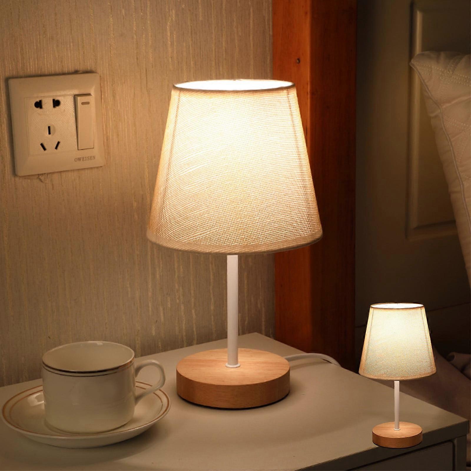 LED Solid Wood Desk Lamp with Stable Fabric Shade, Warm Night Light for Home, Study & Reading - Compatible with Linen Décor