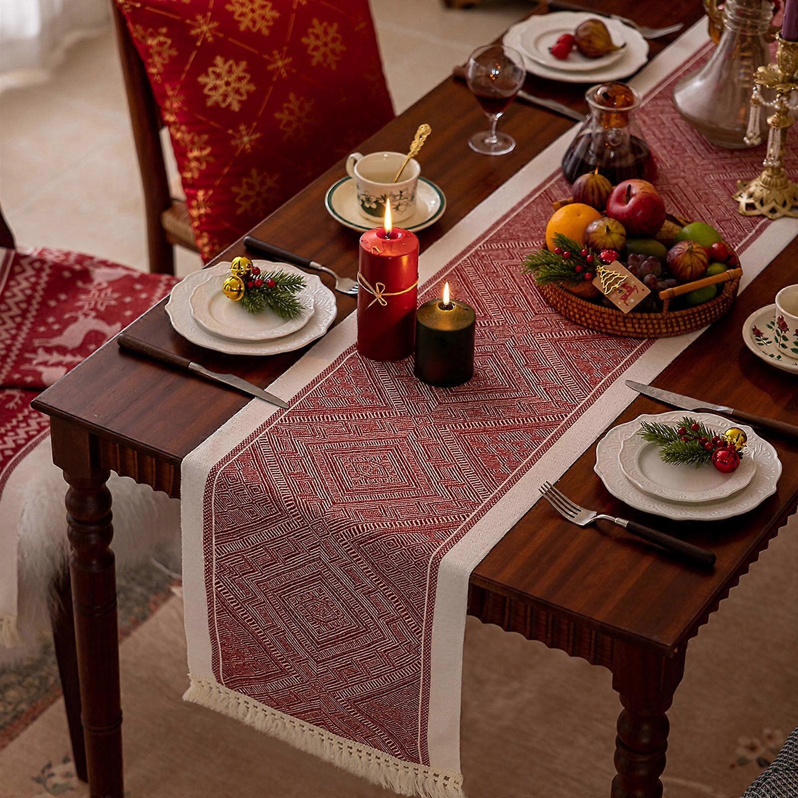 Christmas Red Table Flag, Watertight Cotton Linen Cloth 71x14in for TV Cabinet, Coffee Table - Christmas Gifts Clearance!