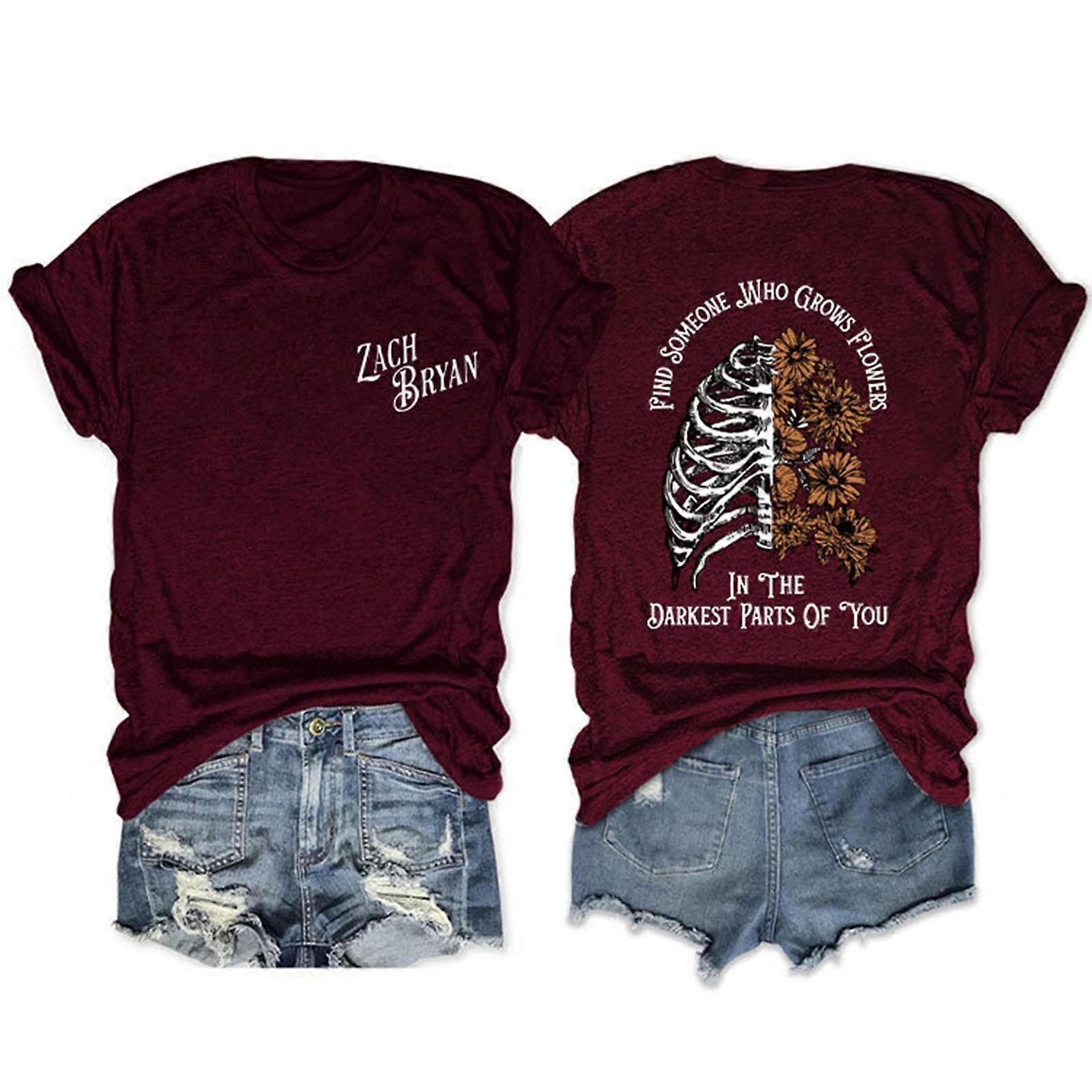 Casual Loose Short Sleeve Shirt for Women Trendy Tops with Unique Letter Print Round Neck Top Burgundy XL