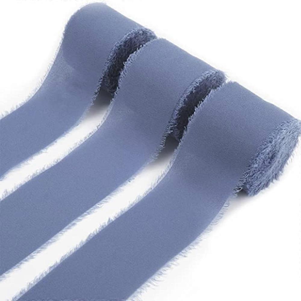 3 Rolls Handmade Fringe Chiffon Silk Ribbon Gauze 1.5" x 5Yd Ribbons Set for Wedding Invitations, Bridal Bouquets, Gifts Wrapping, DIY Crafts