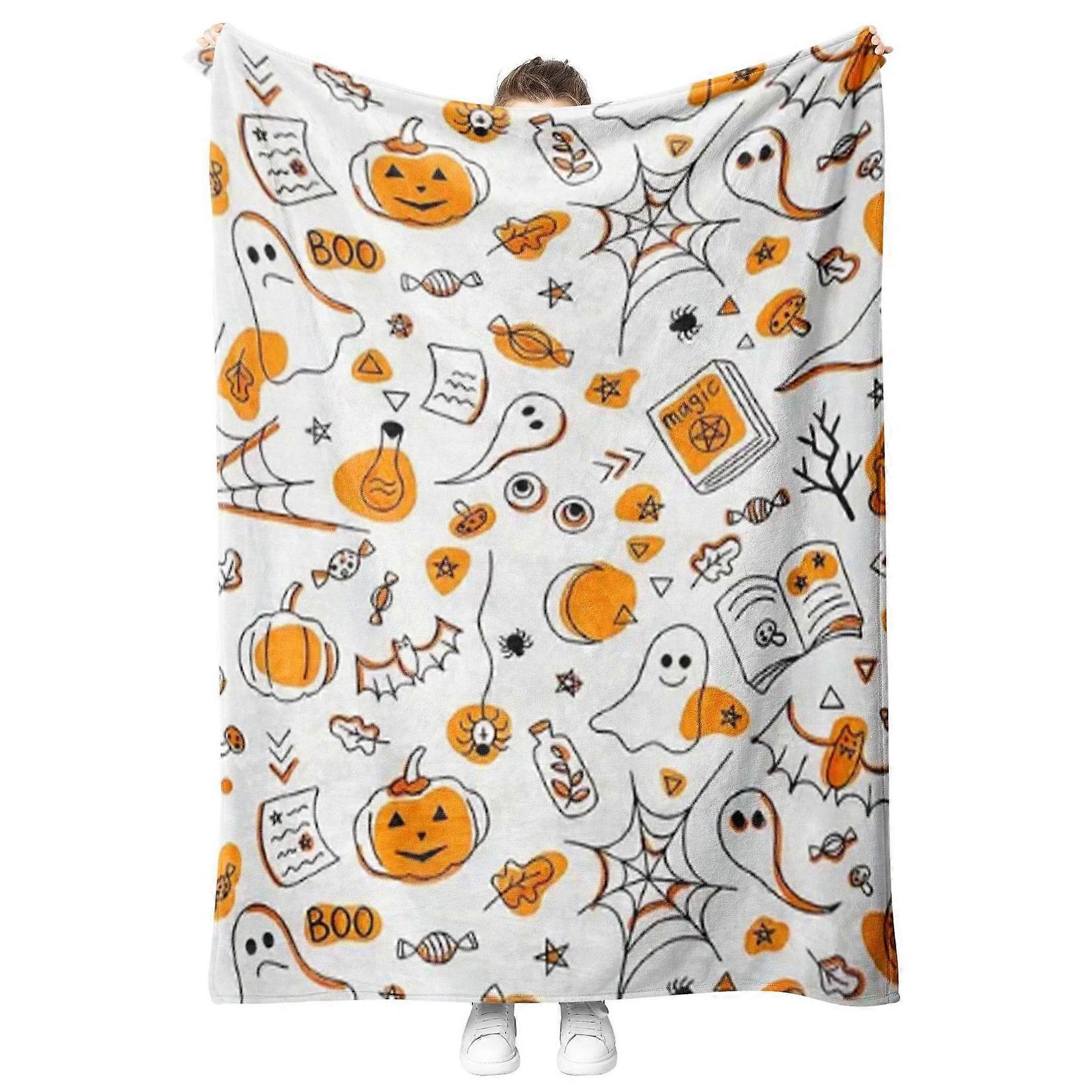 Halloween Throw Blanket Spider Webs Bat Pumpkin Blanket Cozy Flannel White Halloween Decoration for Party Sofa Bed Living Room 40*50 Color 5
