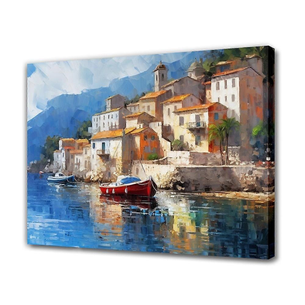 A Peaceful Seaside Town Canvas Poster Bedroom Decor Sports Landscape Office Room Decor Gift,Frame-style,16x24inch(40x60cm)