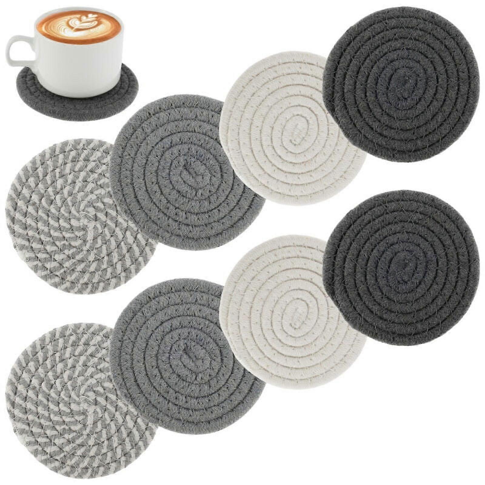 Qenwkxz 8pcs Cup Mat, Absorbent & Heat-Resistant, Hand Woven Cotton Rope, Grey/White, for Cup Bowl Plate, 11x11x0.8cm