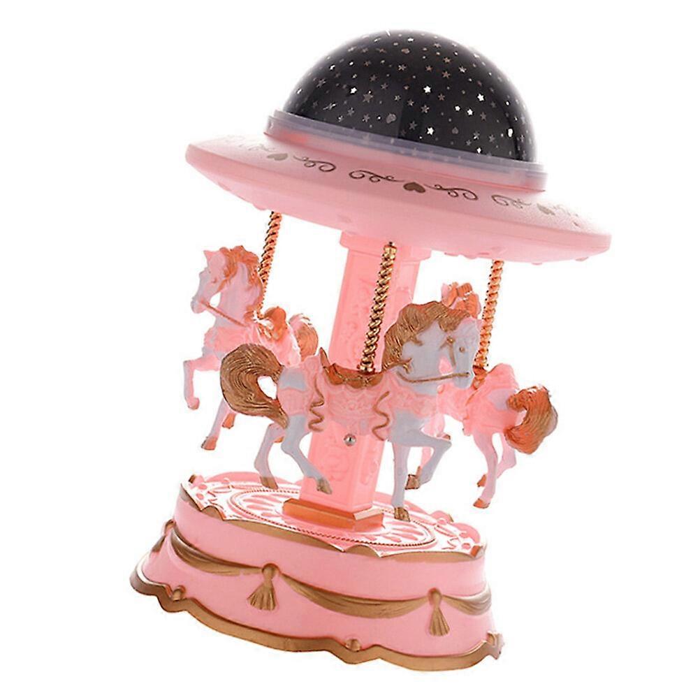 Carousel Music Projection Light Projector Lamp Boxes for Girls Christmas Pink Plastic