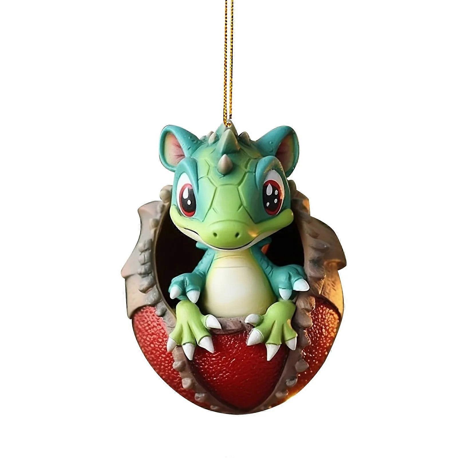 Cute Baby Dragon Acrylic Egg Pendant, Compatible with Christmas Tree & Car Hanging, Adorable Home Decor and New Year Gift