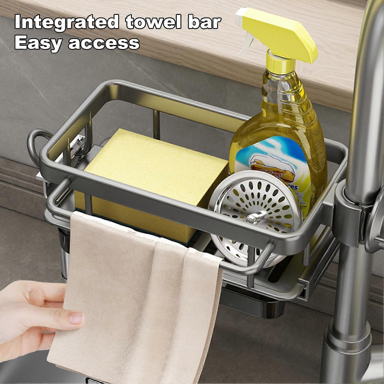 SUSUchens Kitchen Faucet Storage Rack with Drip Tray, Rustproof & Corrosion Resistant, Easy Install, Multifunctional Sink Organizer, Sponge Holder