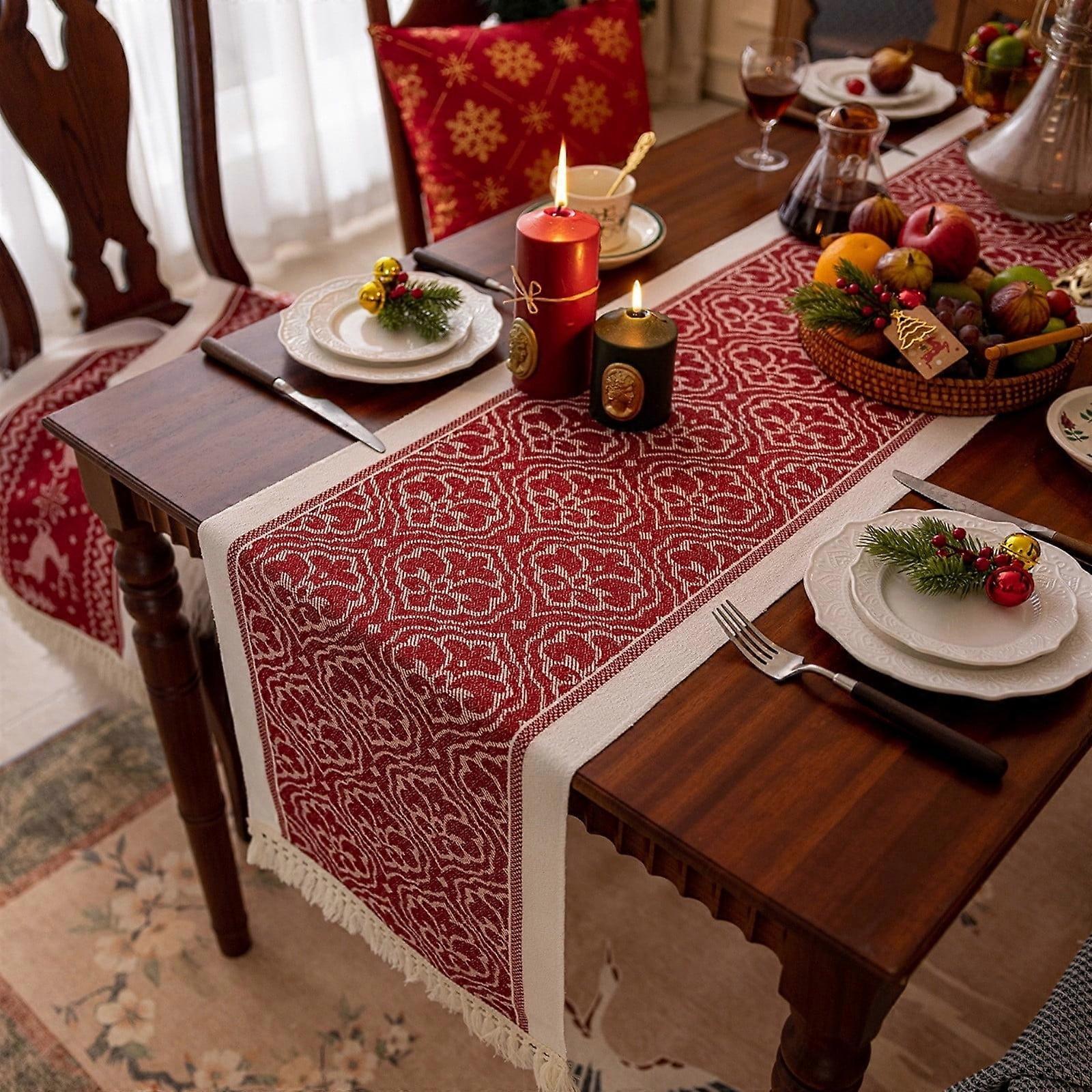Christmas Red Table Flag 71x14in, Cotton Linen, Watertight Decor, TV Cabinet Cover, Coffee Table Cloth – 2024 Winter Savings