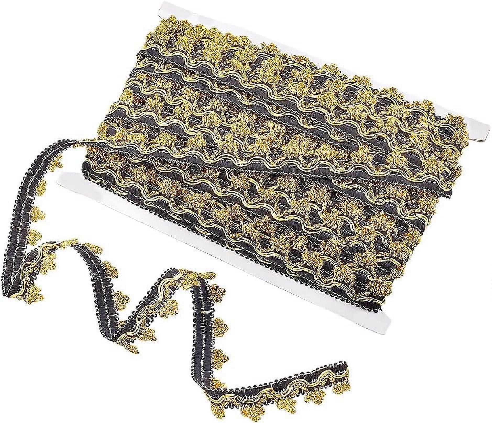 21 Yards Metallic Lace Trim Polyester Braided Ribbon 3/4 inch Gimp Fringe Trim Tassel Upholstery Trim with Crown Trimming for Curtain Crafts Sewing Home Decor Black DIY Exquisite Pattern: The delicate lace side has lace trim in a uniform crown pattern, and the metallic lace trim has a subtle, unique sheen. The combination of black and gold is very classic and durable. High Quality: Made of high quality polyester, with excellent textile performance, firm and durable, anti-wrinkle and non-ironing, good light fastness, safe and long-term use. Perfect Size: This braid ribbon is 0.78 inch/20mm wide; you can use it for decorating and adding finesse to your gifts and crafts Easy to Cut: Can cut the length according to your needs, and won't tangle. After cutting, please pay attention to sealing the edges in time to prevent the woven pattern from falling apart. Versatile Use: Very suitable for decorating the borders of furniture upholstery and accessories, such as curtains, throw pillows, bedspreads, lampshades, sofas and other decorations, and can also be used to decorate clothing, curtains, bags, clothes and so on.