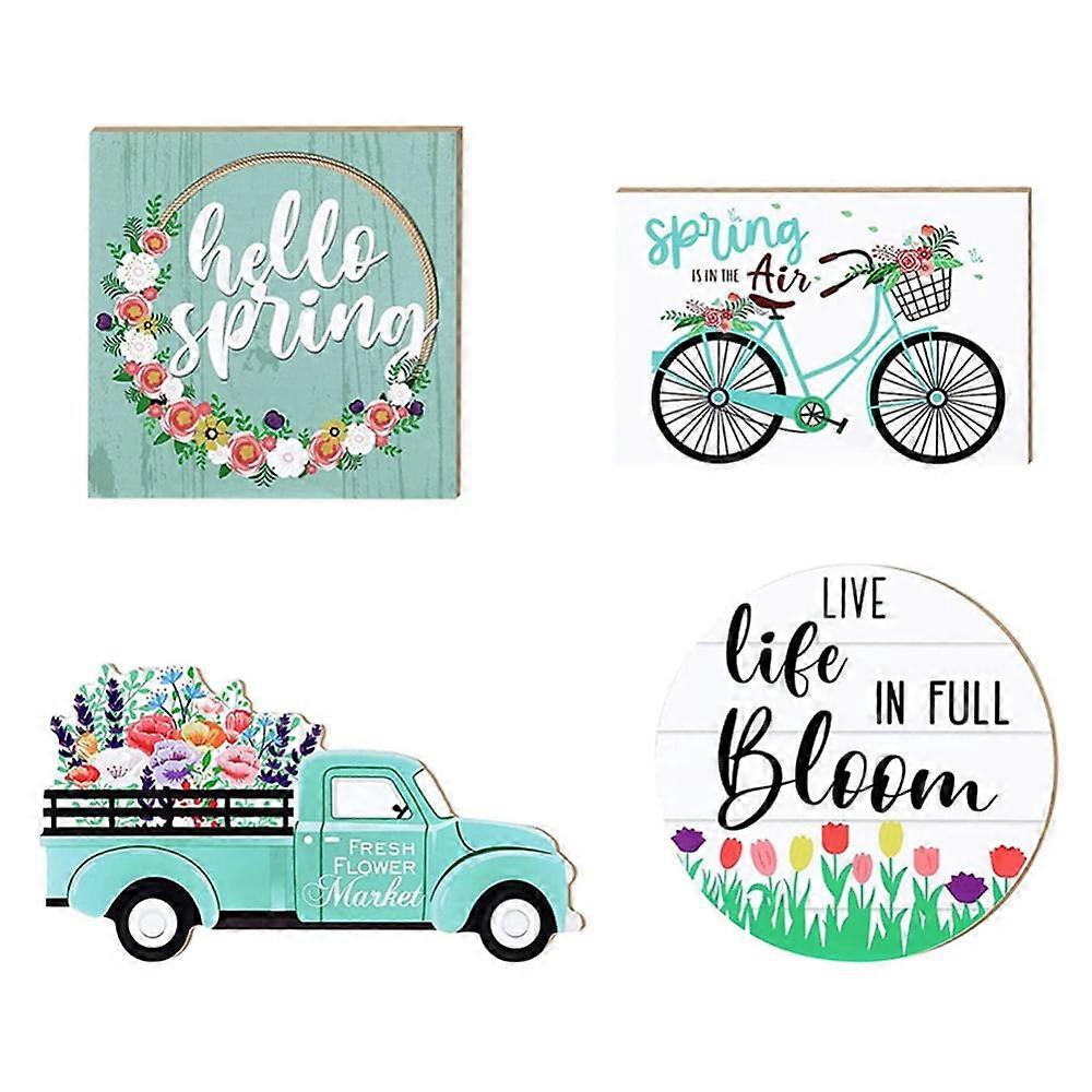 4 Pieces Hello Spring Happy Easter Tiered Tray Decorations Farmhouse Mini Wood Decor Kitchen Decor (Truck)