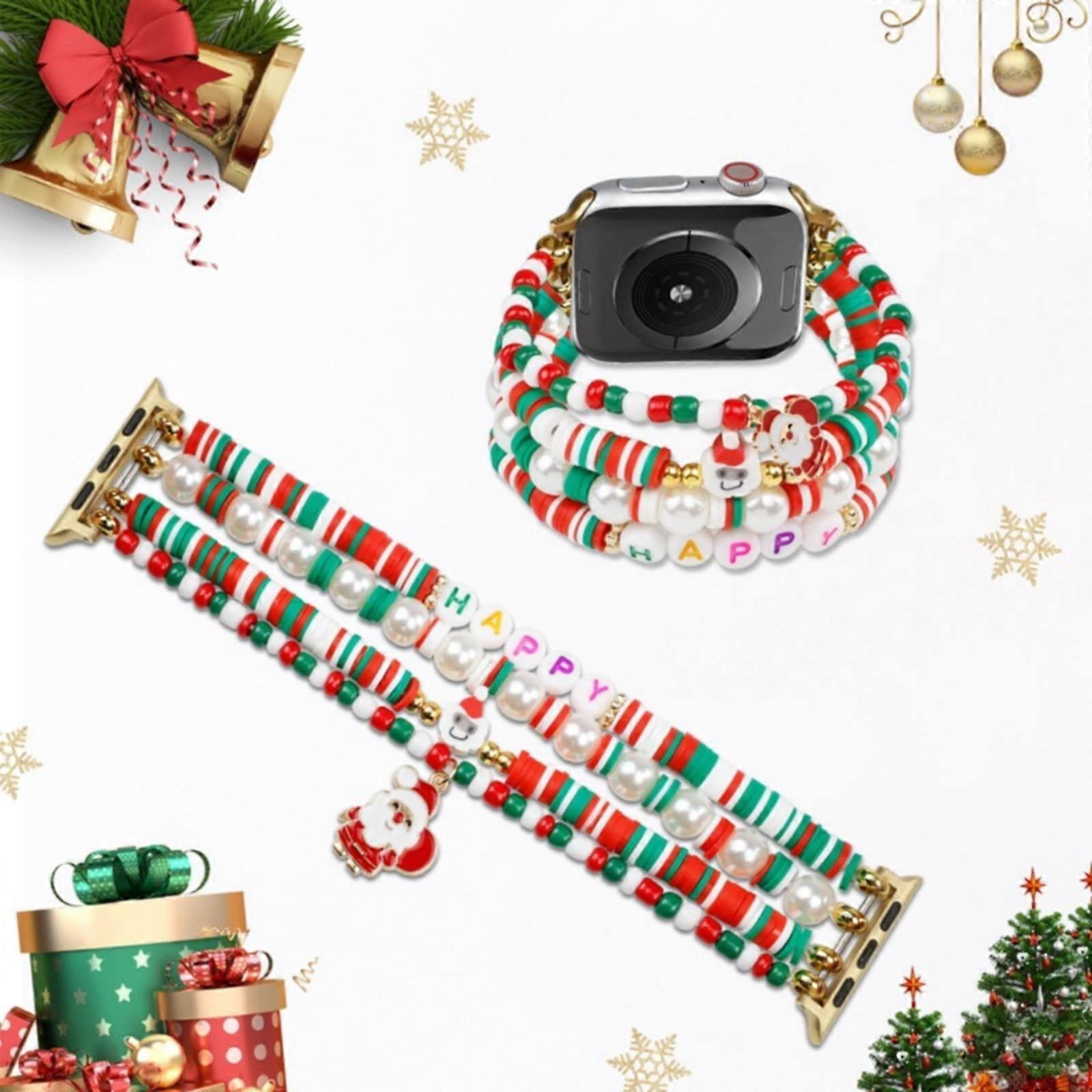 Winysin Christmas Natural Stone Beads Bracelet for Women Compatible with Iwatchs10 42mm 46mm, Elastic Crystal Holiday Bracelet