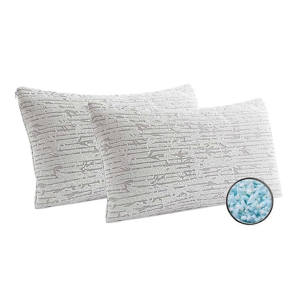 Queen Size Memory Foam Pillow Set of 2, Cooling Bamboo Rayon Cover, Adjustable & Removable, Compatible with Bed Pillows
