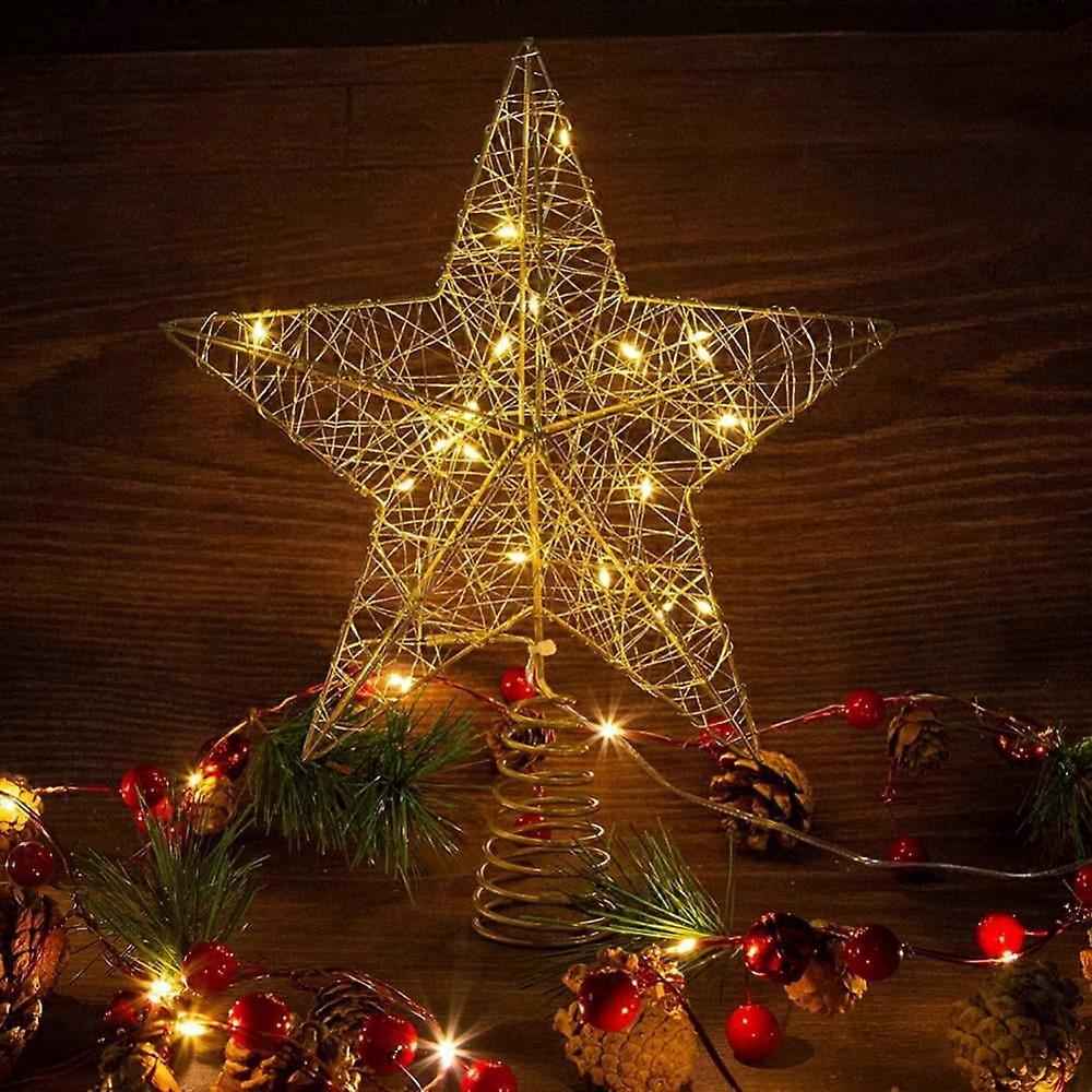 6 Inches Metal Glittered Christmas Tree Topper Star Treetop Decoration for Christmas Home Decor