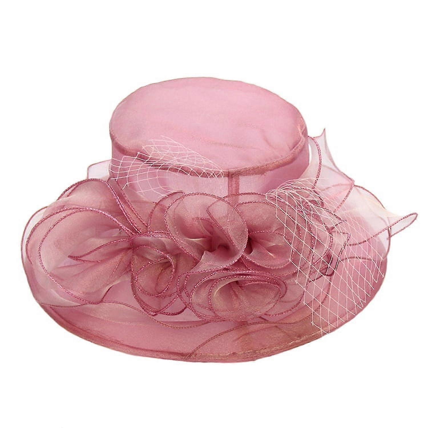 Women's Organza Church Kentucky Derby Fascinator Bridal Tea Party Wedding Hat [56-58CM,Dark pink]