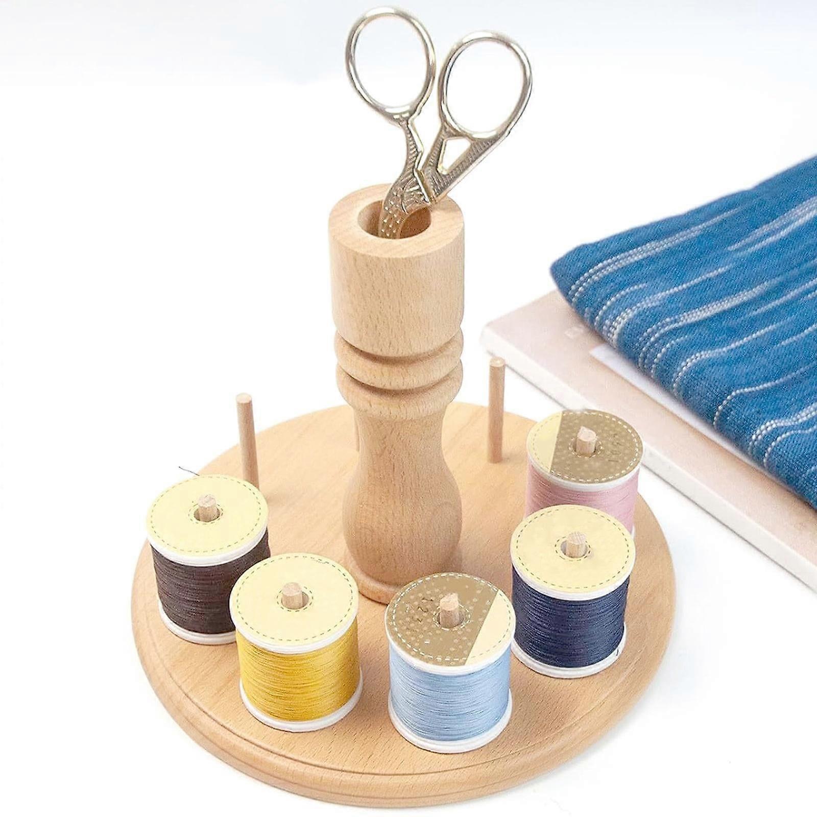 Qenwkxz Wooden Thread Holder Rack 8-Spool Organizer for Sewing, Quilting - Pine Wood Bobbin Storage Stand, 5.1 x 6.3 inch