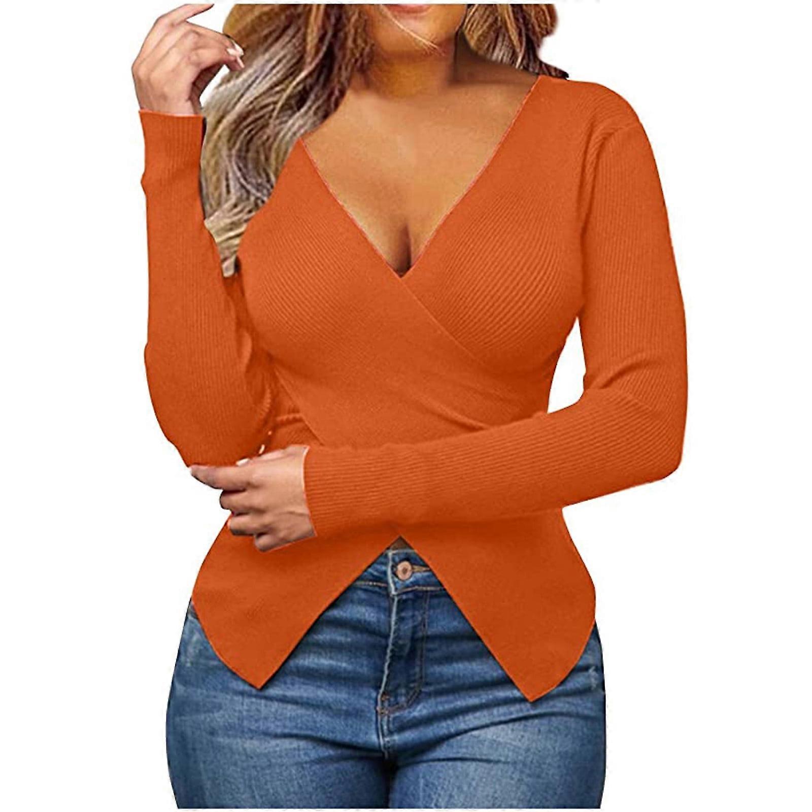 Lilgiuy Clearance under 5$ Women's 2022 Trendy Solid Color Knitted Sweater Wrap V-neck Criss Cross Front Long Sleeve Autumn And Winter Elegant Blouse