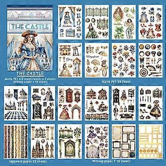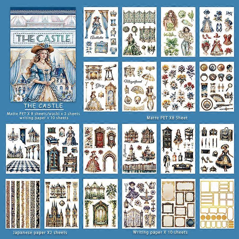 20Sheets Castle Princess Aesthetic Sticker Book Pre-Cut Blue Castle Flower Matte PET Washi Stickers For Scrapbooking Journal