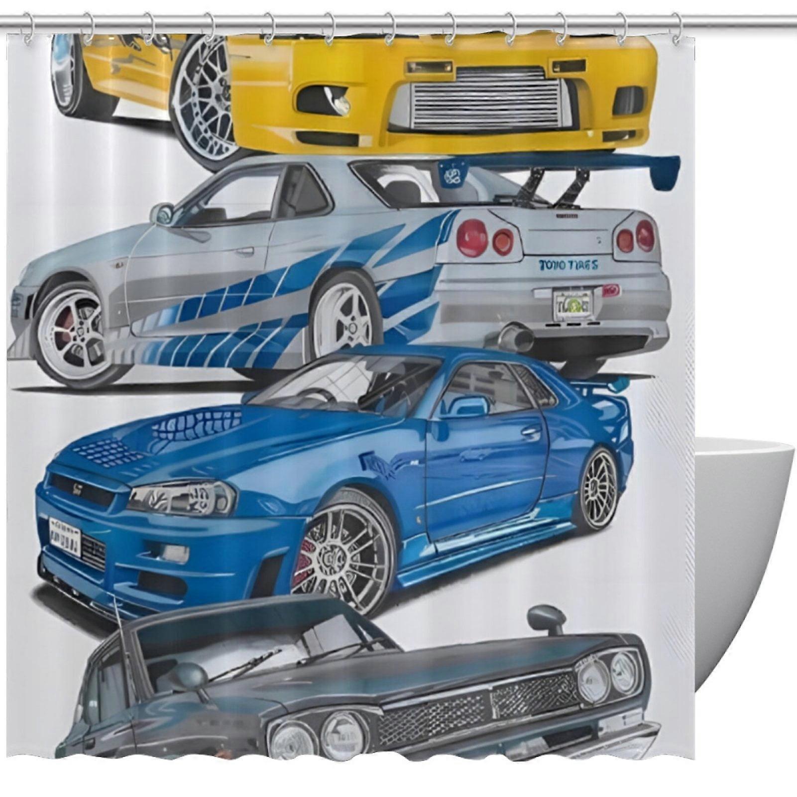 Fast and Furious Skyline Supercar Printed Shower Curtain with Hooks 66" x 72"