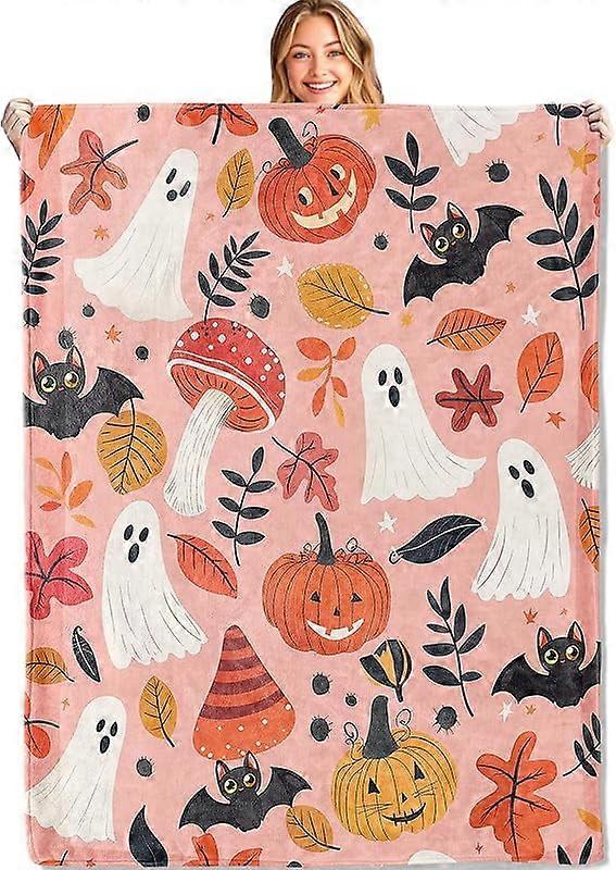 Ghost and Pumpkin Throw Blanket Soft,Lightweight Flannel,Cute Pink and Orange Blankets - Gifts for Kids Girls,for Couch Office Travel,Home Living Room Halloween Festive Decor 【Premium Flannel】Crafted from flannel, this blanket provides both superior comfort and lasting durability.The material is not only incredibly soft but also lightweight and warm, making it a versatile addition to your home decor.The soft material offers a gentle touch, perfect for wrapping up during cooler evenings, while its robust construction ensures it remains a staple in your home through regular use and washes. 【Elegant and Versatile Design】The blanket boasts a stylish design that complements any home decor. It’s a perfect accent piece for your bed, sofa, or chair. 【Versatile Use】Whether you are adding a layer of warmth to your bed, draping it over your couch for a cozy touch, or using it as a picnic blanket for an outdoor adventure, this versatile throw meets all your needs. It is lightweight and easy to carry, making it perfect for both indoor and outdoor use,, ensuring you stay warm and comfortable no matter where you are. 【Perfect Gift 】Whether you are looking for a thoughtful gift for a friend, family member, or yourself, this blanket is an ideal choice. Its stylish design and cozy material make it a popular gift for birthdays, holidays, housewarmings, and more. It’s a gift that combines functionality with aesthetic appeal. 【Easy Care】This blanket is machine washable, ensuring hassle-free maintenance. Wash it on a gentle cycle with cold water and mild detergent. Avoid using bleach to preserve the vibrant colors and soft texture. For drying, it’s best to tumble dry on low heat or air dry to maintain the fabric’s integrity and prevent shrinkage.The flannel material is durable and machine-washable, ensuring that the blanket retains its softness and vibrant design even after multiple washes.