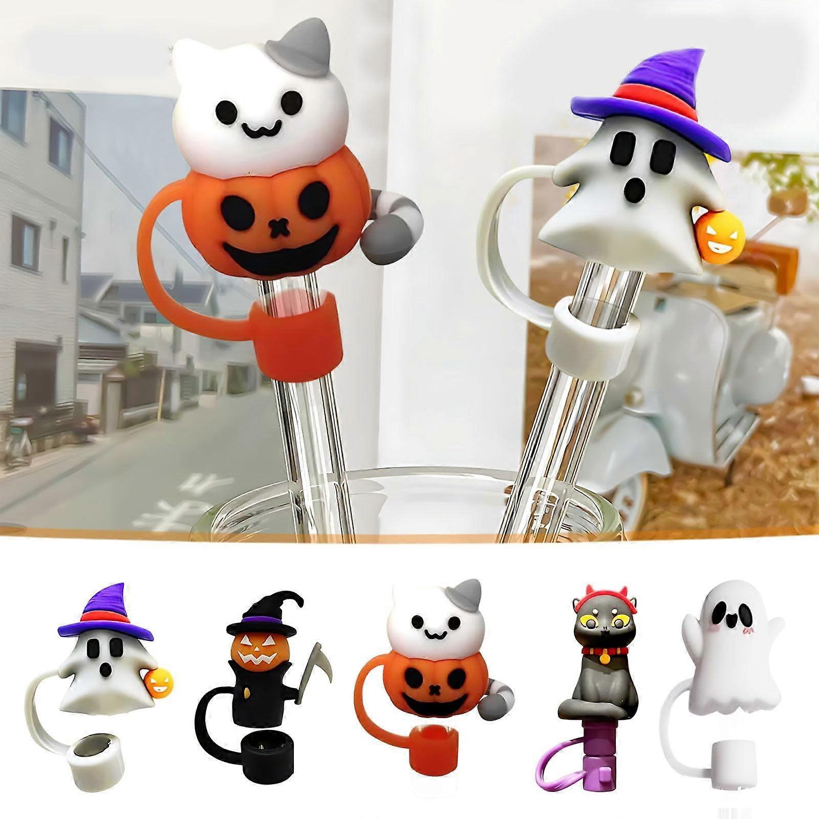 Giyblacko 5pcs Silicone Halloween Cup Caps Set, Reusable Dust Plugs, Pumpkin/Cat Covers, Spill-Proof Cup Stopper, Compatible with Cups