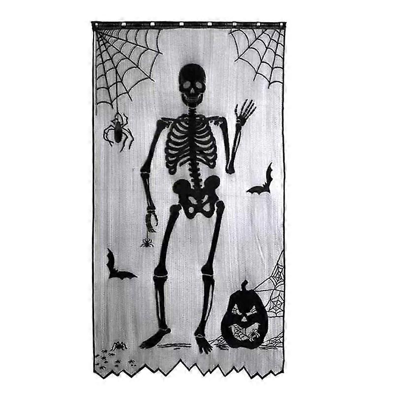 40x84 inch Spider Skull Web Bats Halloween Window Curtain Lace Door Panel Decor