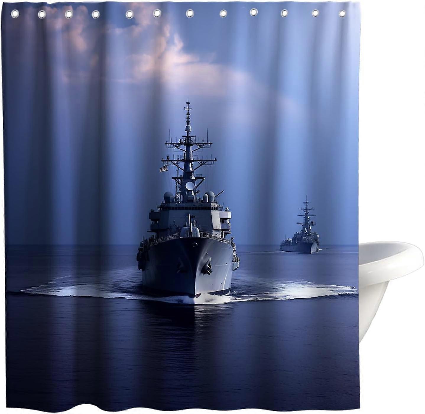 American Military Carrier Ships Shower Curtain - 60x72" Aircraft Theme, Waterproof, Washable, with Hooks, Battle Grey/Blue