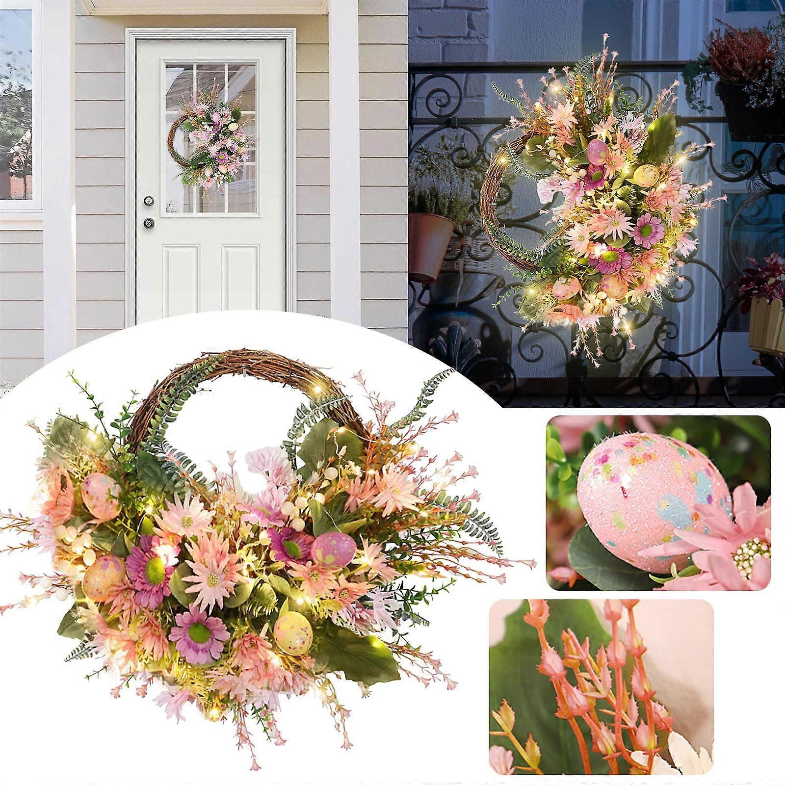 Easter Wreath, Faux Party Wreath, Dried Vines And Artificial Flowers, Spring/Summer Decorative Wreath, Front Door Or Interior Wall Decoration Features: Home Decor - Beautiful fresh garlands look realistic and vibrant with greenery. This eggs wreath is made from a natural rattan base, artificial flowers and dried rattan to give it a more vibrant look. Farmhouse Wreath - 100% handcrafted with faux colorful assorted flowers and pastel easter eggs. Handcrafted garlands are a great way to celebrate the season and welcome guests or family into your home MULTIPLE USES - The door garland can be used as an interior or exterior trim accessory. As a wreath, place it on your front door or hang it above your fireplace, window, wedding, ceremony party, stage, living room, bedroom, office, dining room, etc.; also great for expressing emotions during festivals such as Easter, birthdays, Couple's Day, Mother's Day, etc. Size:50cm/19.6in Copper wire lamp, copper wire lamp is warm white, always on, the lamp is 2 meters long, 20 lights, switch control, the product does not include batteries, you need to bring 2 AA batteries. Package includes: 1x Garland Desktop Ornament garland decoration wreath,wreaths for front door,wreath hanger,wreath hanger for door,wreath form,wreath storage,wreath hook,wreath holder,wreath frame,wreath door hanger,wreath sash Easter Wreath, Faux Party Wreath, Dried Vines And Artificial Flowers, Spring/Summer Decorative Wreath, Front Door Or Interior Wall Decoration Committed to creating a comfortable and warm home environment for families so that every family member feels happy and satisfied.